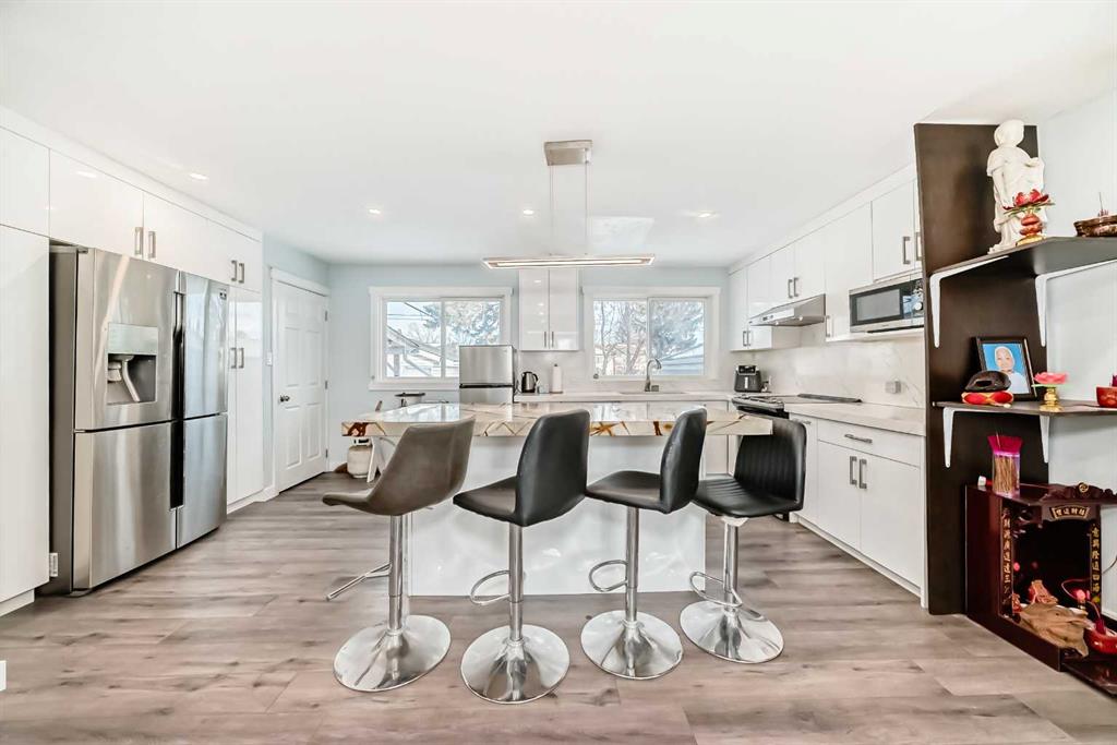 Welcome to this beautifully updated open-floor-plan bungalow featuring a bright open-concept living room, 3 bedrooms on the main level, and a renovated 4-piece bathroom with quartz countertop. Newer windows, Hotwater tank, high efficiency furnace. The home offers laminate flooring throughout, with tile flooring in the basement bathrooms & basement entrance for easy clean, modern finish. The stylish kitchen includes stainless steel appliances and quartz countertops, with all bathrooms fully renovated and upgraded with quartz surfaces.
