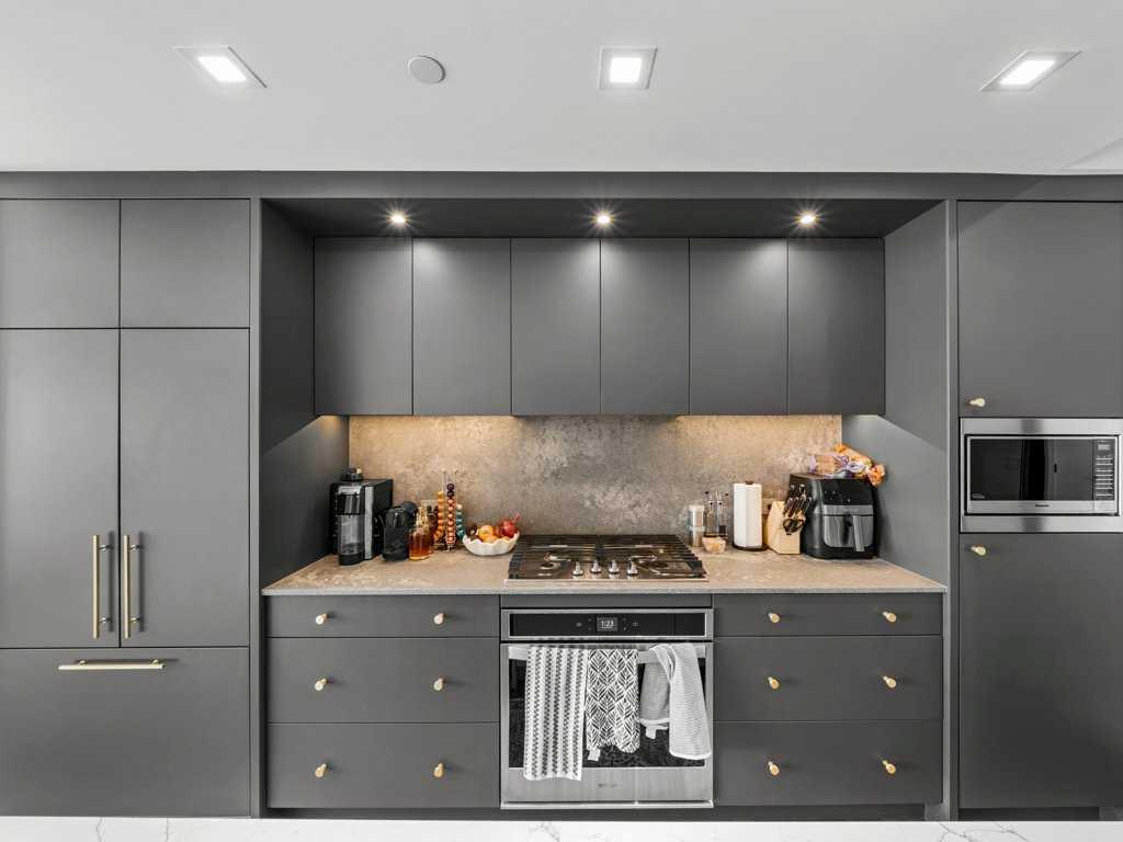 Welcome to Gateway by Truman where contemporary design meets urban convenience in Calgary’s premier West District. This stunning SOUTH FACING 2-bedroom, 2-bathroom south-facing unit combines modern luxury with everyday functionality. Featuring soaring 9-foot ceilings, floor-to-ceiling windows, and chevron-patterned luxury flooring, this residence offers an abundance of natural light and an open-concept layout perfect for both relaxation and entertaining. The chef-inspired kitchen showcases quartz countertops, full-height soft-close cabinetry, under-cabinet lighting, and high-end stainless-steel appliances including a gas cooktop and built-in oven. The spacious primary suite includes a walk-through closet and elegant ensuite with double vanities and a glass-enclosed shower, while the second bedroom and full bath provide ideal flexibility for guests, roommates, or a home office setup. Step onto your sun-drenched private balcony to enjoy peaceful south exposure and evening sunsets, complete with a gas line for BBQ or outdoor heating. Additional conveniences include in-suite laundry, titled underground parking, and access to on-site amenities such as the owner’s lounge, bike storage, and an expansive rooftop terrace. Perfectly situated just steps from boutique shops, cafés, and the new West District retail corridor, this residence offers an unparalleled lifestyle. At its heart lies Radio Park, an award-winning 8-acre urban green space that serves as the community’s social centerpiece. With walking paths, an amphitheatre, a skating pond, and year-round recreational programming, it’s one of Calgary’s most thoughtfully designed public parks, seamlessly blending nature, art, and community life. Experience elevated living in one of West Calgary’s most dynamic and desirable neighbourhoods, where luxury, location, and lifestyle converge.