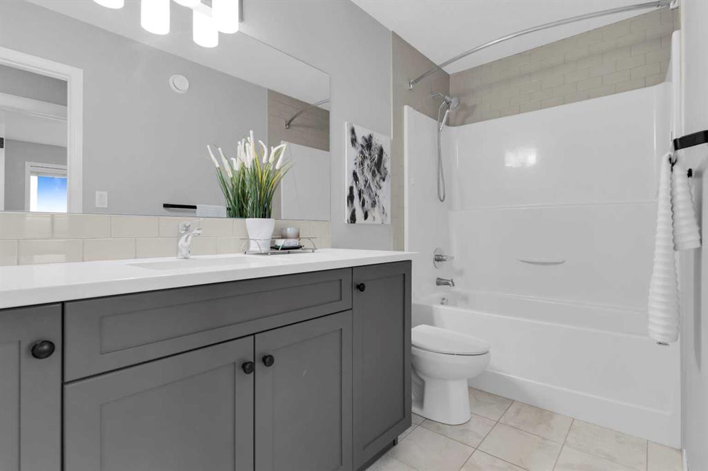 Welcome to LAKE PRIVILEGES | BONUS ROOM | LOADS OF UPGRADES | 23’ DEEP GARAGE. This stylish 1,940 sq. ft. 4-bedroom, 4-bathroom home, built by award-winning Hopewell, is sure to impress! This home has never been smoked in and no pets have ever lived here. The main floor features 9’ ceilings, a spacious front entry, a mudroom off the garage, and a convenient shoe cabinet by the entrance. The upgraded kitchen offers stone countertops, an undermount sink, a stainless steel gas stove, a double-door fridge with water and ice dispenser, under-cabinet lighting, and full-height soft-close cabinets and drawers. A beautiful wide staircase with wrought iron railing leads to the upper level, which boasts a large family room with two skylights, an upper laundry room, and a primary suite large enough for a king bed. The ensuite includes dual sinks and a walk-in shower, and there’s also a walk-in closet. Two additional bedrooms and a full bathroom complete the upper level. The basement features 9’ ceilings and has been professionally developed with permits, including a living area, bedroom, and full bathroom. The backyard is beautifully landscaped with stone, and includes a solid fence, deck, BBQ, and patio furniture — all in excellent condition. Although this is a single attached garage, the extra-wide driveway easily accommodates two additional vehicles, offering ample parking space. Don’t miss this beautifully upgraded home with lake access and exceptional features throughout!