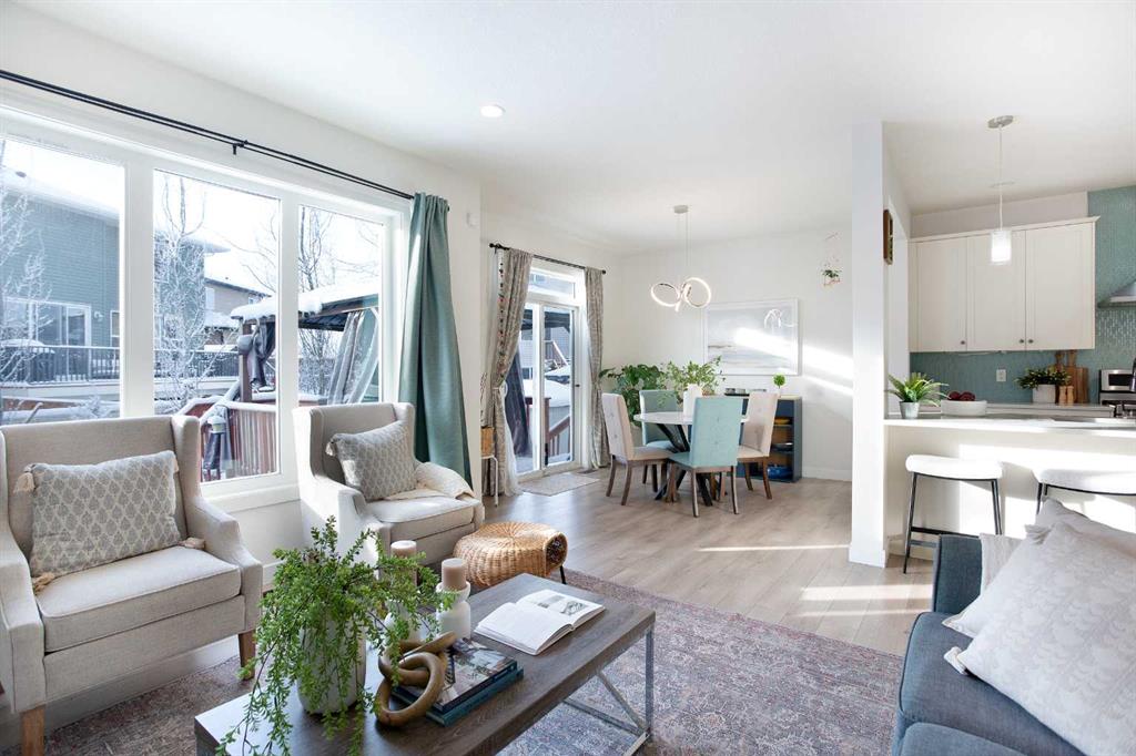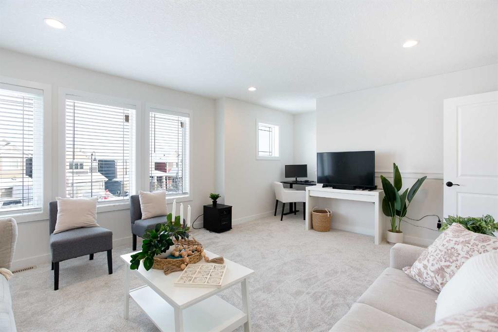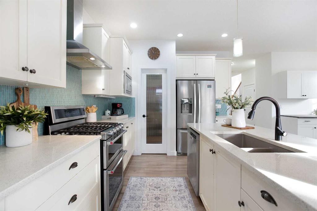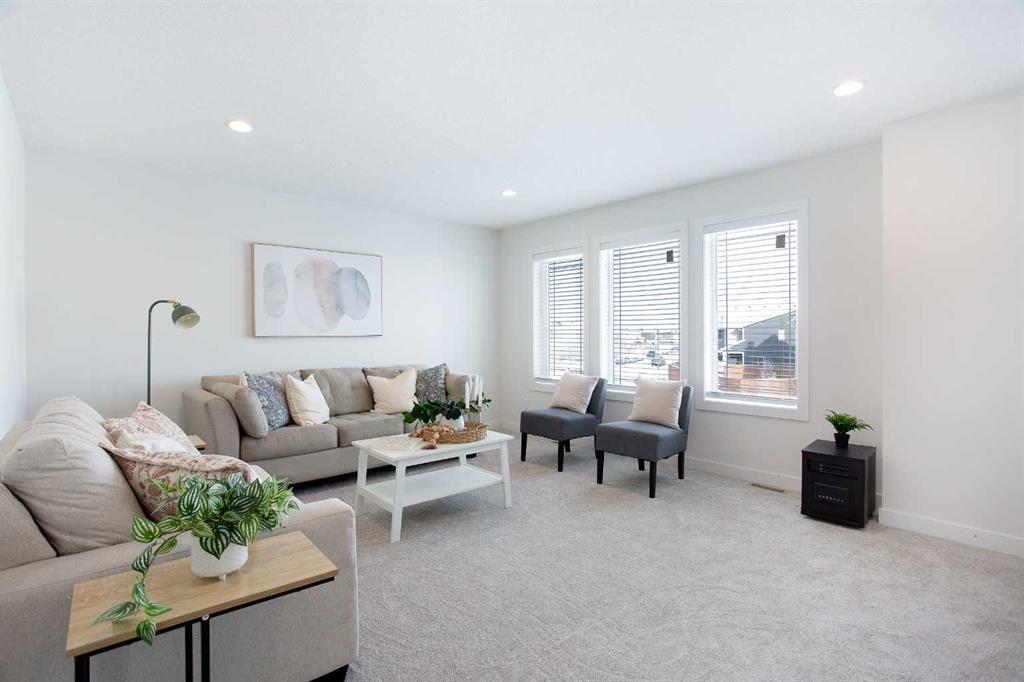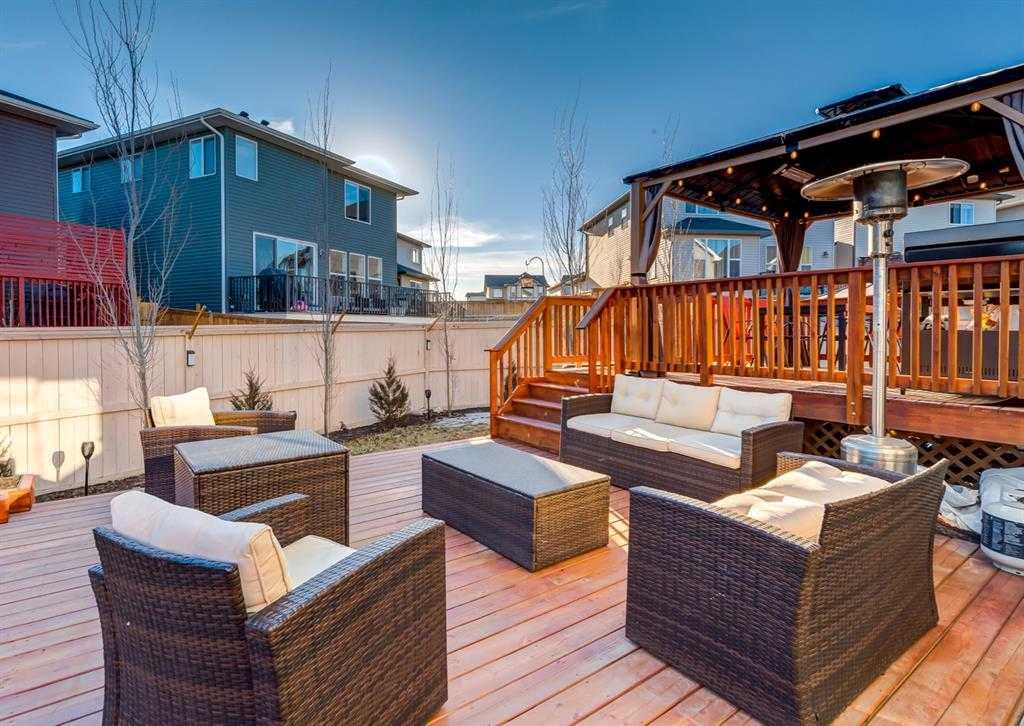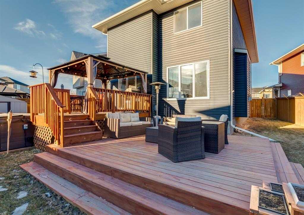 Welcome home to your 2-storey family sanctuary in the heart of highly sought-after Bayview. This spacious home, boasting 5 bedrooms and 3.5 bathrooms across an impressive 3,000 sq ft, is situated on a rare, oversized 4,525 sq ft pie-shaped lot—the ultimate blend of convenience and tranquility. From the moment you walk through the door, the home feels expansive and refined, thanks to nine-foot ceilings and a sophisticated palette across three fully finished levels. The open-concept main floor, anchored by a beautiful gas fireplace, is where life happens. Chefs will adore the gourmet kitchen, which features creamy white cabinetry, a luxurious double wall oven, a powerful gas range, and a brilliant walk-through pantry. Plus, a dedicated main-floor den with custom built-ins ensures you have the perfect quiet spot for working. Upstairs is designed entirely for rest and retreat. The spacious upper-level features new carpeting, generously sized bedrooms, with an expansive primary suite with a spa-like bath, including separate vanities and an oversized glass shower, plus a walk-in closet. 2 additional bedrooms, 4-piece main bathroom and a convenient laundry room, are all located on the 2nd floor. Additionally, the smart layout even features a large family room - ideal for kids' play or family movie nights, that can easily transform into an enormous 5th bedroom! To top it all off, the finished lower level provides the ideal setup for guests or extended family, offering an additional bedroom, an oversized recreation room, a 4-piece bathroom, ample storage spaces. With central air conditioning and a widened driveway, this home truly delivers modern luxury without compromise, but the true jewel is outside. Your massive, private yard is an entertainer's masterpiece! Picture yourself hosting effortless parties on the majestic two-tier deck, sheltered by a gazebo, and complete with a natural gas connection for the BBQ. There's a designated spot for your hot tub and a separate area for a cozy fire pit. Located in the family-friendly community of Bayview, this peaceful haven is steps from everything—parks, walking paths, canals, great schools, shopping, and easy access to Deerfoot! Seamlessly blending style, functionality, and ultimate comfort, it’s time to experience modern living at its finest, and it's completely turn-key! Don't miss this opportunity; contact us to arrange your private showing today!