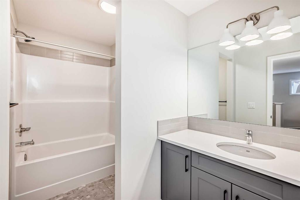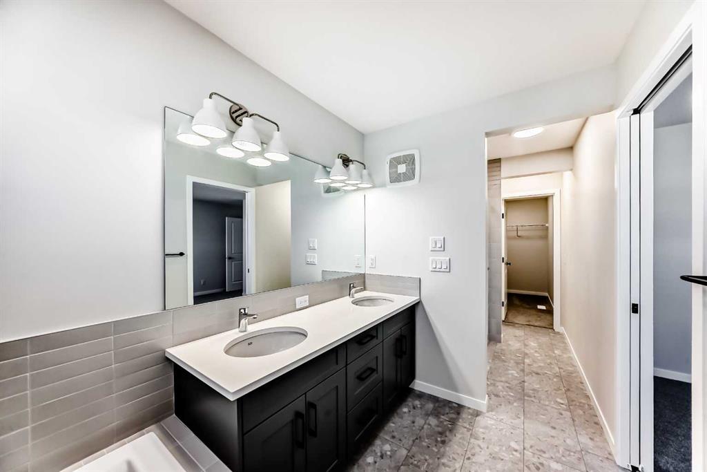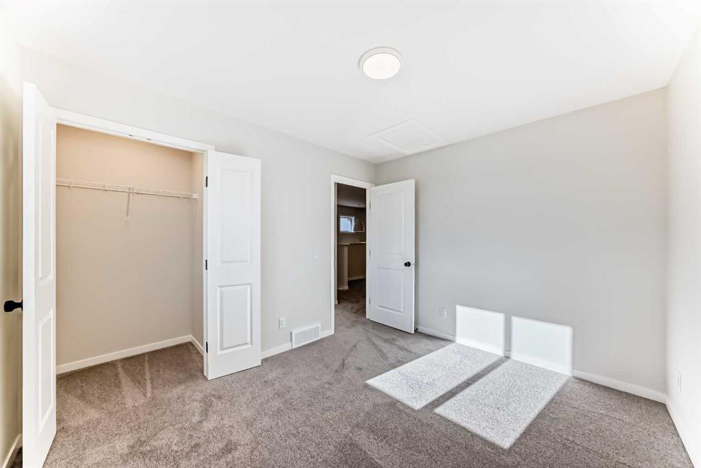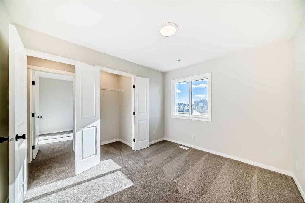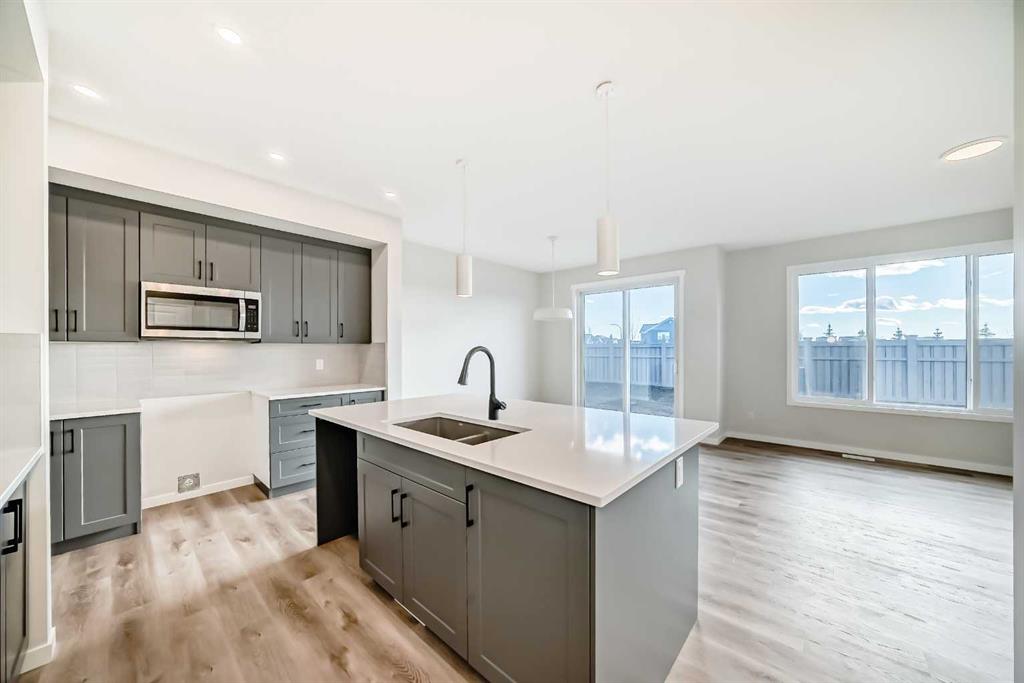 Welcome to the Kalara—where modern design, flexible living, and everyday functionality come together in one beautifully planned home. A bright, open-concept main floor connects the kitchen, dining, and lifestyle areas, all oriented to a desirable south-facing backyard that fills the space with natural light. The kitchen is a true standout with modern grey cabinetry carried to the bulkhead, black hardware, white quartz counters, a stacked subway tile backsplash, and stainless steel appliances. Thoughtful touches—like pot lighting and clever added storage under the island’s bar seating—make this space as practical as it is stylish. A versatile main-floor flex room adapts easily to a home office, study, or playroom, while upstairs a central loft offers an ideal media zone or reading nook. The upper floor is headlined by a smartly designed laundry room that connects directly to the primary ensuite—streamlining daily routines—alongside a serene primary retreat and two additional bedrooms for family or guests. Designed with tomorrow in mind, the home features a 9' foundation and a secondary side entrance, creating excellent potential for future basement development—think guest or in-law space, or a suite configuration (subject to city/municipality approval and permitting). With its balanced layout, quality finishes, and room to grow, the Kalara nails comfort, function, and value. Set in Mahogany—one of Calgary’s most sought-after lake communities—you’ll enjoy a 63-acre freshwater lake, two private beaches, and an extensive network of parks, pathways, and wetlands. Everyday essentials are close at hand with plentiful nearby shops and services, plus quick access to schools and the South Health Campus. It’s an active, four-season lifestyle wrapped in a vibrant community—an easy place to love calling home.