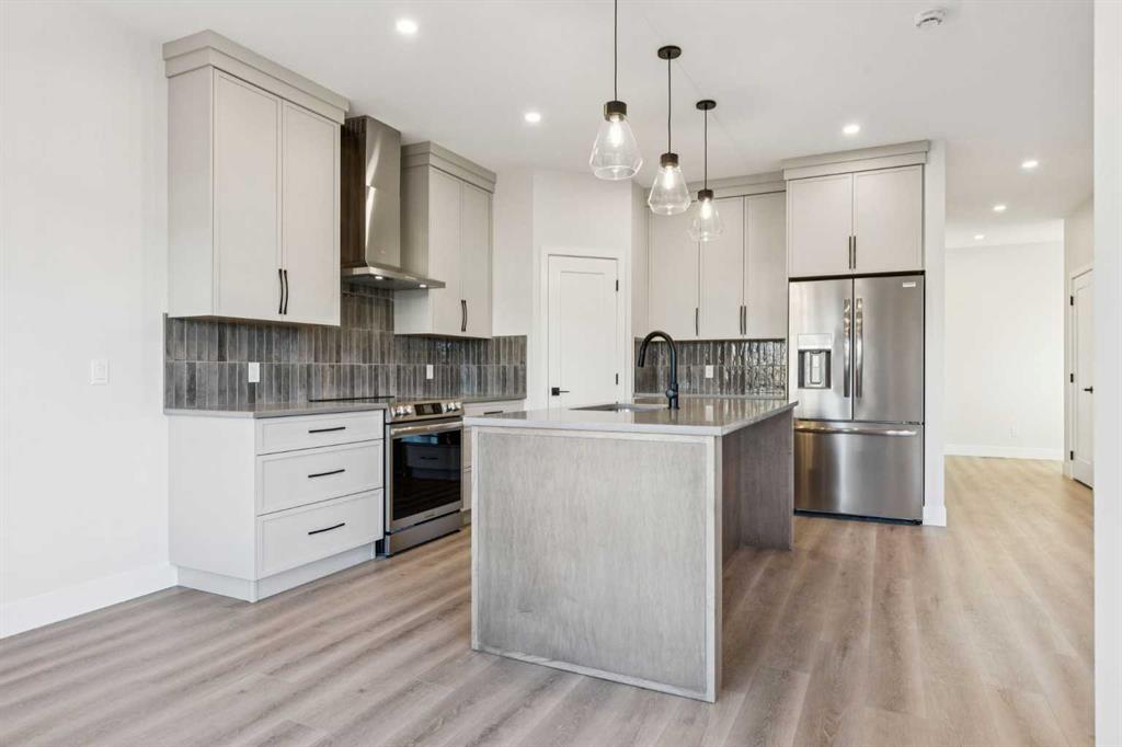AMAZING NEW PRICE = UNBEATABLE VALUE! Discover exceptional craftsmanship and modern living in this stunning 1,820 sq. ft. two-storey home located in the sought-after community of Greystone, Cochrane. Built by R Space, a trusted local builder known for superior quality and attention to detail, this home offers timeless design and enduring value. Located on a quiet street and backing onto a lovely greenspace/ walking path this property is truly one that cant be missed. The striking monotone exterior is fresh and modern sure to set this this home apart from all the neighbors. Step inside to find an open-concept main floor filled with natural light, featuring 9-foot ceilings, solid wood cabinetry, and beautiful, high-end appliances. Every detail has been thoughtfully selected — from the solid wood railings and built-in closets to the 200-amp electrical service and solar power rough-in for future efficiency. Upstairs, enjoy a spacious central bonus room with warm wood accents and elegant pass-through natural light. The primary suite is a true retreat, complete with a large walk-in closet and a luxurious tiled shower. Two additional bedrooms provide generous space for family or guests. The oversized, fully insulated and drywalled garage offers extra height and storage potential — perfect for all your vehicles and gear. Located just steps from the Bow River, walking paths, parks, playgrounds, pickleball courts, shopping, and the recreation center, Greystone offers the best of community living right at your doorstep. This brand-new home comes with a Certified New Home Warranty for your peace of mind and is ready for immediate possession. Come experience this exceptional home and vibrant community for yourself — book your private tour today!