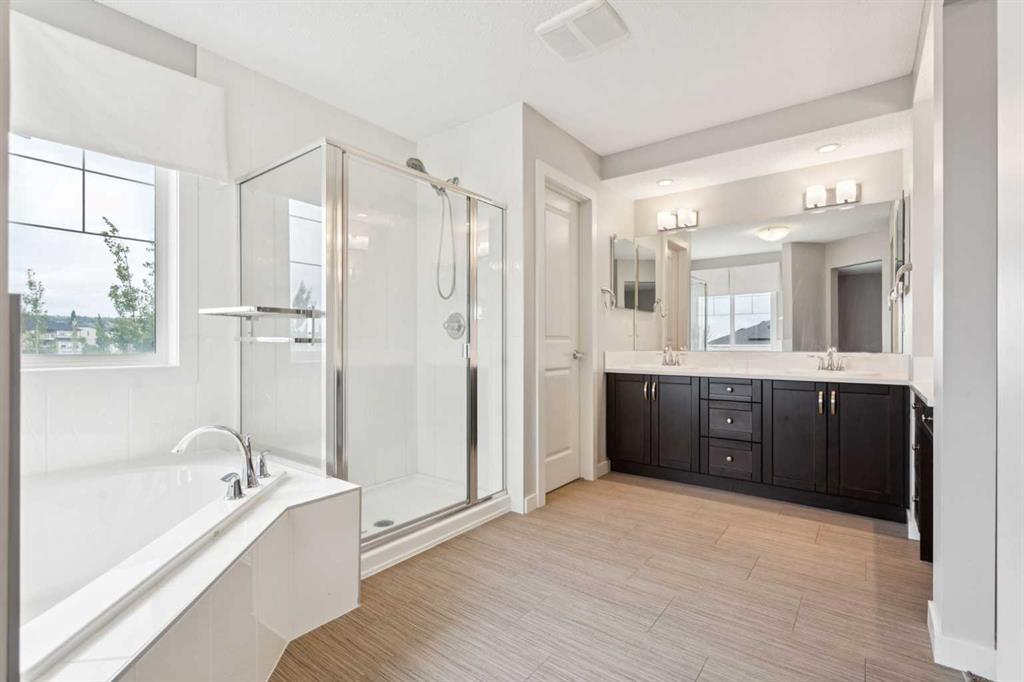 Upstairs, a spacious bonus room with built-in media cabinetry and a wet bar sits alongside a convenient laundry room. The primary suite includes a walk-in closet, a five-piece ensuite, and blackout blinds in all bedrooms.
