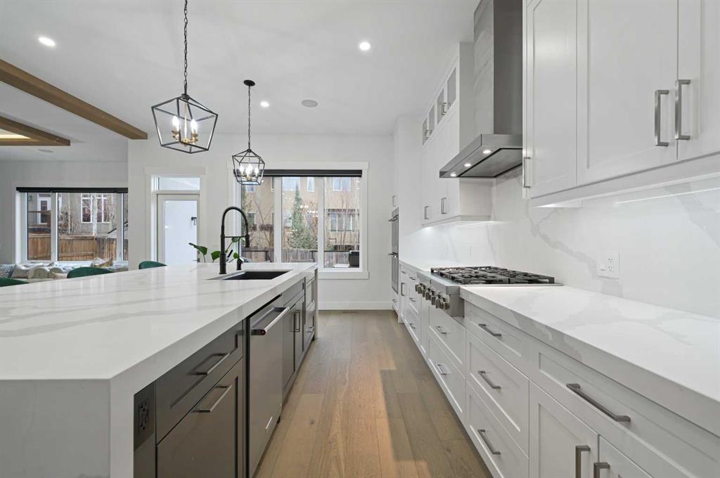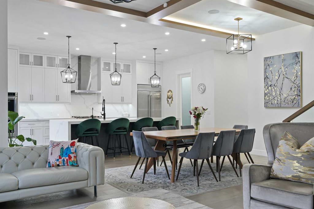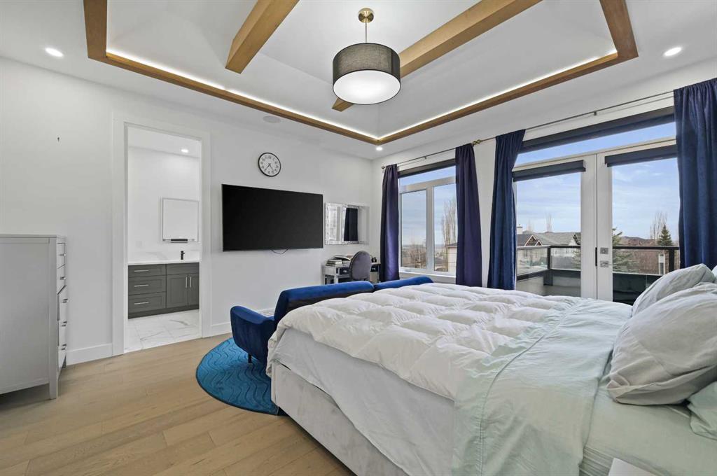 Welcome to 7250 Elkton Drive SW, a stunning estate home offering over 4,500 SQFT of beautifully developed living space with 7 bedrooms in the prestigious community of Springbank Hill. From the moment you step inside, you'll be captivated by the home’s stature, warmth & elegant design, where a sprawling yet intimate floor plan perfectly balances grand entertaining and cozy family living. The main floor features a bright living room, spacious home office or guest suite. The heart of the home is the magazine-worthy chef’s kitchen, boasting a dramatic oversized quartz apron island, high-end appliances, a generous walk-in pantry, and an open layout that flows seamlessly into the dining and living areas, where guests can gather around the stunning floor-to-ceiling tiled fireplace. Step outside to the expansive rear deck and let the kids play under the shade of a majestic historic tree. Upstairs, the luxurious Primary Suite offers a private retreat with its own sitting area and access to a front patio with city views, plus a spa-like ensuite featuring a standalone glass shower, tear-drop soaker tub, and a fashion-lover’s dream walk-in closet. The second bedroom enjoys its own private ensuite, while the third and fourth bedrooms share a convenient Jack-and-Jill bathroom, with upper laundry completing the level. The fully finished basement extends the living space with a sleek wet bar, custom built-ins, and two additional bedrooms, perfect for extended family or guests. A triple garage with epoxy floors, an EV charger, and private entrances from both the garage and side patio add incredible convenience. With central A/C and situated minutes from top schools, shopping, fine dining, and recreation, this home is the perfect blend of luxury, functionality and timeless charm - your dream oasis awaits!