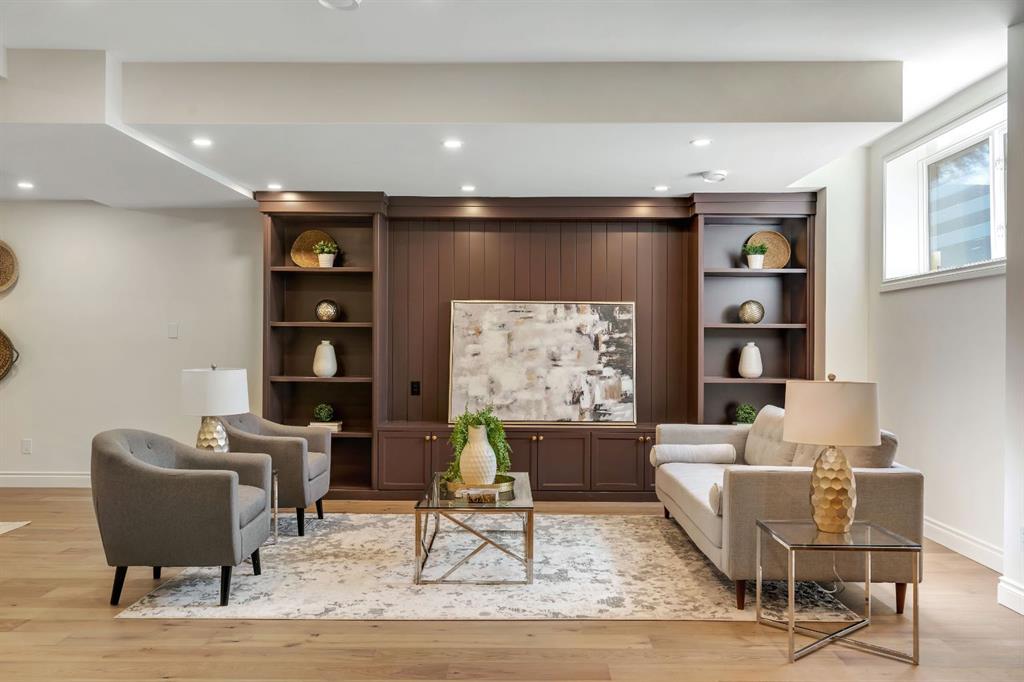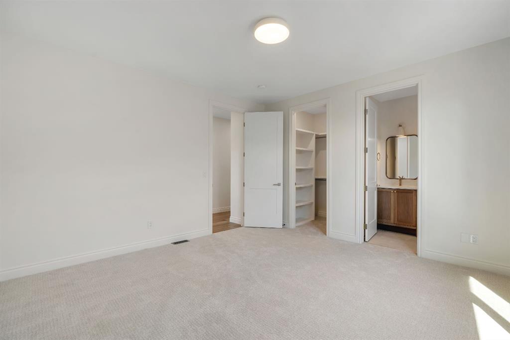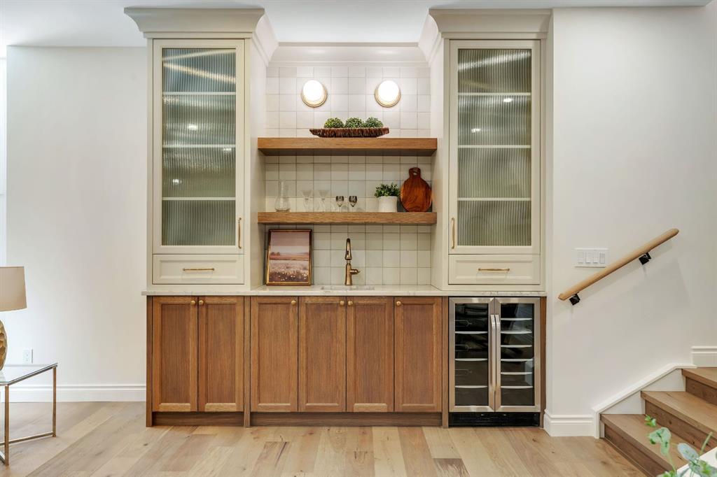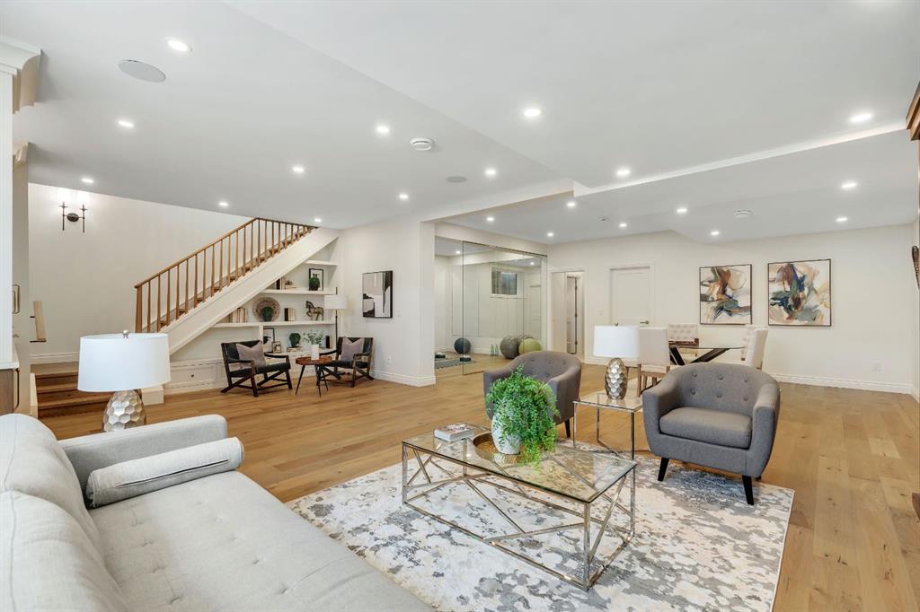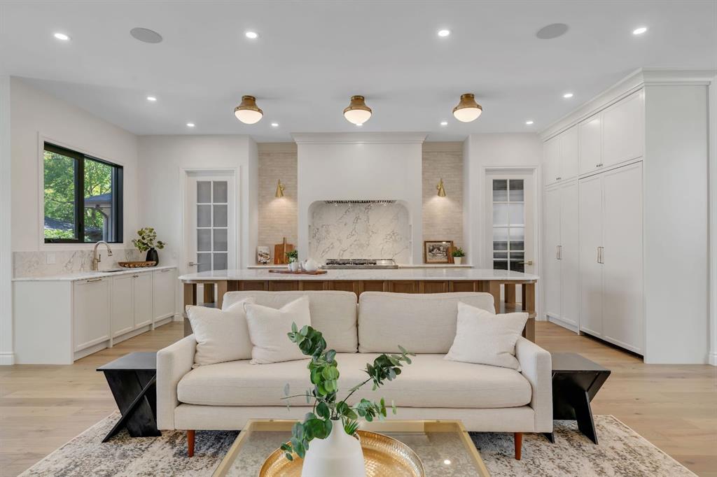 Welcome to The Bardot, an architectural masterpiece that seamlessly blends French cottage elegance with modern luxury in Calgary’s highly desirable Marda Loop. Thoughtfully crafted by Cedar Rock Homes and curated by Aly Velji Designs, this bespoke residence offers four bedrooms, 4.5 bathrooms, and a triple-car garage. The exterior showcases a stunning fusion of stone, stucco, and Hardie panel, paired with an aluminum cedar soffit entry, custom aluminum Lux windows, and a striking front entry door. A private backyard enhances the tranquility of the large composite patio with aluminum glass railing, while the fully landscaped and fenced yard ensures low-maintenance outdoor enjoyment. Inside, 10’ ceilings on the main level and 9’ ceilings on the upper and lower floors create a sense of volume and sophistication. The wide plank white oak engineered hardwood flooring extends across all floors, all solid core doors, accentuated by custom site-built cabinetry with maple dovetail drawers and Blum hinges throughout. The heart of the home is the gourmet kitchen, appointed with a premium JennAir appliance package including a 48” gas range, 48” panelled refrigerator, panel-ready dishwasher, and an island microwave drawer. A curved quartz slab island, custom cabinetry, and a sculptural hood fan set the tone for a refined culinary space. A butler’s pantry with extended storage and designer lighting and plumbing fixtures, including Brizo and Delta finishes, enhances functionality and style, while the spacious dining room features a custom oak sideboard, functional spaces like the large mudroom, adorned with bespoke millwork. A cozy gas fireplace anchors the main floor living room, while the foyer leads to a beautifully designed home office complete with custom cabinetry with glass doors, French doors, and floor plugs. Upstairs, three bedrooms each offer their own walk-in closets and all ensuites with heated tile flooring. The luxurious primary suite features a vaulted ceiling and a spa-inspired ensuite with an oversized steam shower (two rain heads, and hand bar), a freestanding tub, solid slab stone backsplash, and custom hanging metal mirrors. A dedicated laundry room with washer, dryer, sink, rod, and cabinetry completes the upper level. The finished basement offers additional entertaining and lifestyle spaces with a gym room, TV/game area, a full bathroom, a wet bar with beverage fridge, and generous storage. Mechanically, the home is equipped with dual-zone 96% efficient furnaces with humidifiers, a heat recovery ventilator, automatic water shut-off valve, and rough-ins for in-floor basement heating, air conditioning, vacuum flow, speakers, a security system, and exterior cameras. Every inch of The Bardot speaks to quality, comfort, and timeless beauty. Located in a quiet pocket of Marda Loop just steps from trendy boutiques, restaurants, dog parks, schools, and minutes from downtown, this home is the perfect harmony of prestige and practicality. Book your showing today!