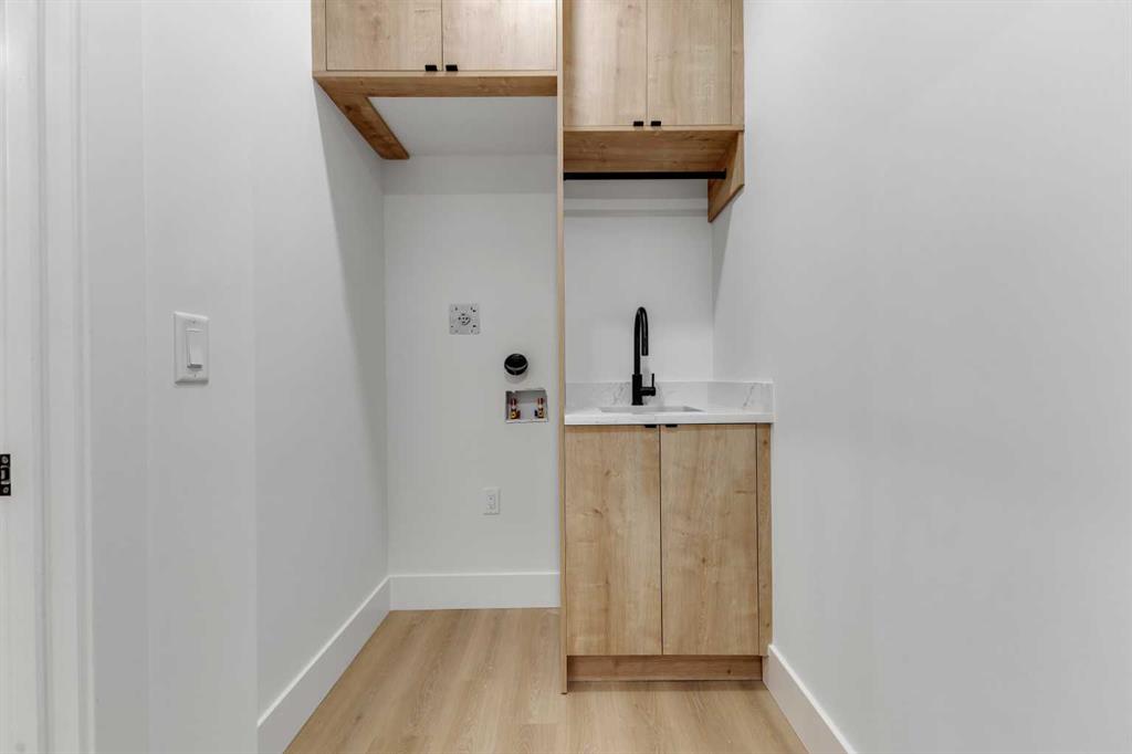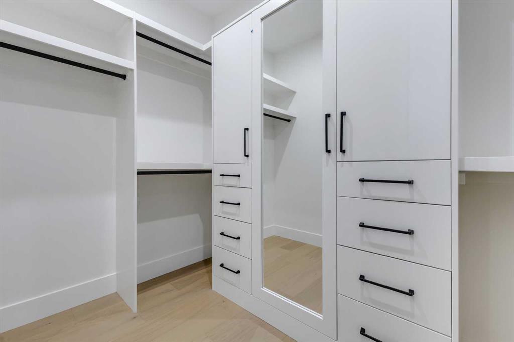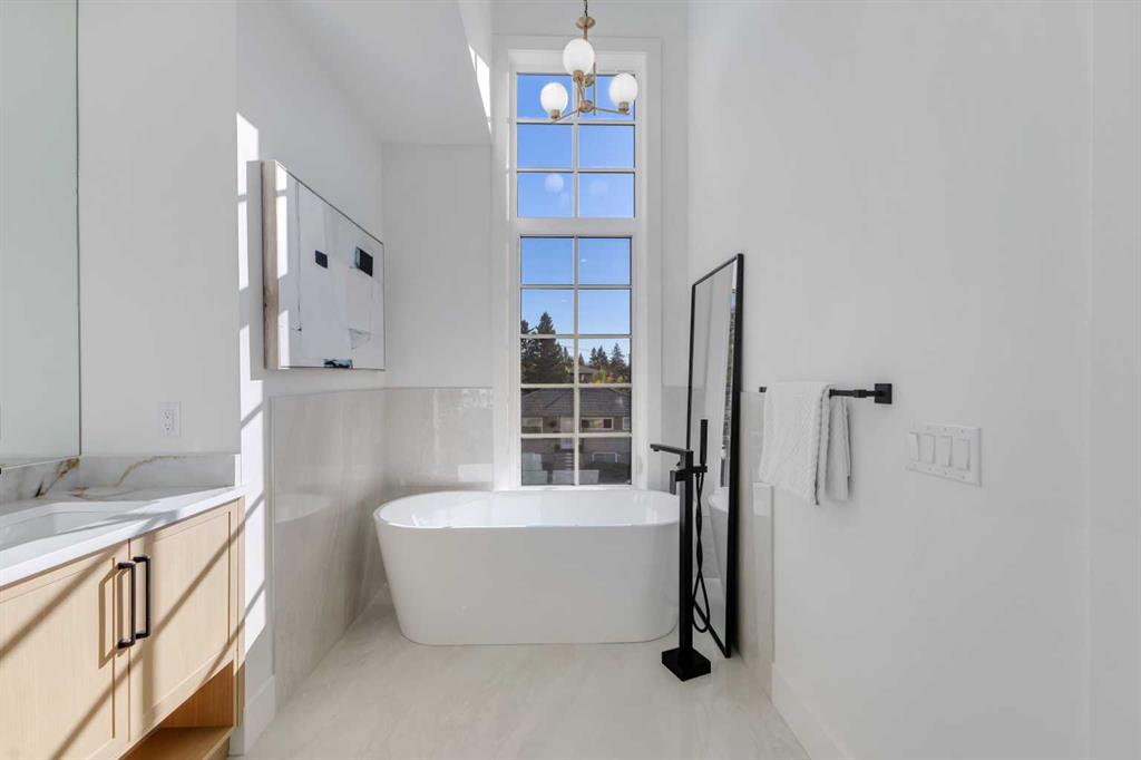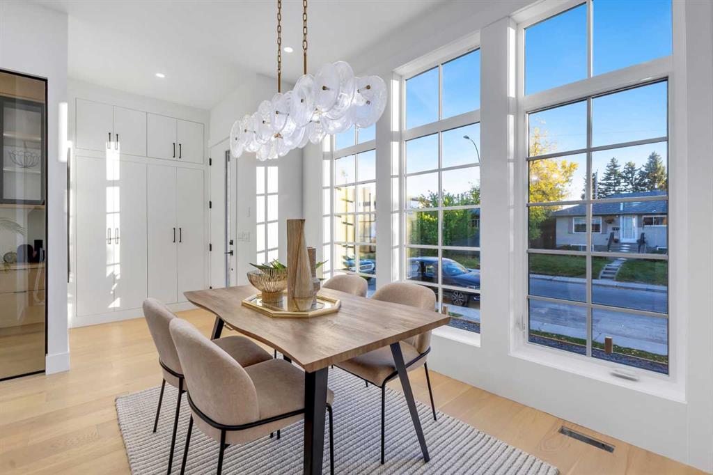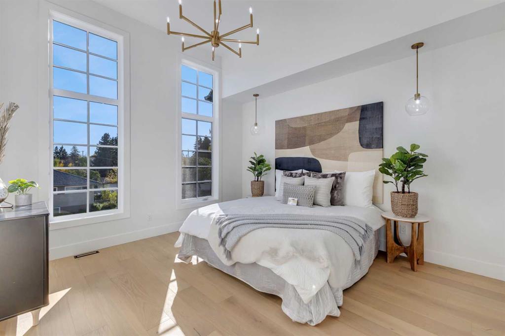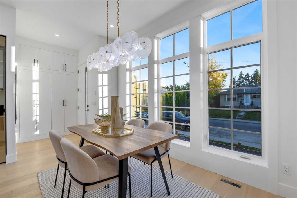 Don’t miss this stunning modern infill in the heart of ROSSCARROCK, designed with HIGH-END FINISHES, a WALKTHROUGH BUTLER’S PANTRY, and a RARE 3-BED, 2-BATH LEGAL LOWER SUITE (approved by the city). With a functional open-concept layout, upscale details, and a prime inner-city location, this home delivers a perfect blend of style and practicality. The spacious foyer welcomes you inside with direct access to the formal dining area, bathed in natural light from oversized windows, making it an ideal space for hosting gatherings or enjoying everyday meals. A walkthrough butler’s pantry seamlessly connects the dining room to the chef’s kitchen, offering custom cabinetry, a beverage fridge, a sink, and additional storage—perfect for entertaining and meal prep. The kitchen itself is a showstopper, featuring ceiling-height cabinetry, quartz counters, a full-height backsplash, and a large central island with bar seating. A stainless-steel appliance package includes a French door fridge, gas cooktop, wall oven, microwave, and dishwasher, ensuring both function and style. More storage is offered by the eye-catching coffee station or wine area, enhanced with LED lighting and glass displays. A main floor home office off the kitchen adds even more convenience for a work-from-home set up. The bright and open living room is designed for comfort and elegance, featuring an inset gas fireplace with a full-height tile surround with built-in cabinetry, and sliding patio doors taking you out to the rear deck. The rear mudroom helps keep daily essentials organized, and an upscale powder room completes the main level. Upstairs, the primary suite is a true retreat with vaulted ceilings, expansive windows, and a spacious walk-in closet. The spa-like 5-pc ensuite is designed for relaxation, featuring heated tile floors, dual sinks, a freestanding soaker tub, and a walk-in shower with full-height tile surround. Two additional secondary bedrooms share a well-appointed 4-pc bath, while a nook on the landing provides the perfect study space and a full laundry room with extra storage ensures everyday convenience. The legal lower suite (approved by the city) is a standout feature, offering a private side entrance and modern finishes as the rest of the home. With 9-ft ceilings, engineered hardwood floors, 2 FULL BATHS AND 3 FULL BEDS, this suite is ideal for tenants, extended family, or additional living space! The 4-pc baths feature tub/shower combos with full-height tile surrounds. The open-concept kitchen and living area include quartz counters, custom cabinetry, a full-size fridge, electric range, and separate laundry. Rosscarrock is a vibrant inner-city neighborhood, offering quick access to downtown via Bow Trail, transit options like Westbrook C-Train Station, and fantastic shopping & dining on 17th Ave! Outdoor lovers will appreciate Edworthy Park, Douglas Fir Trail, and Shaganappi Point Golf Course, plus top-rated schools just minutes away! *Photos from show suite.