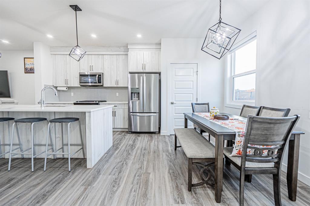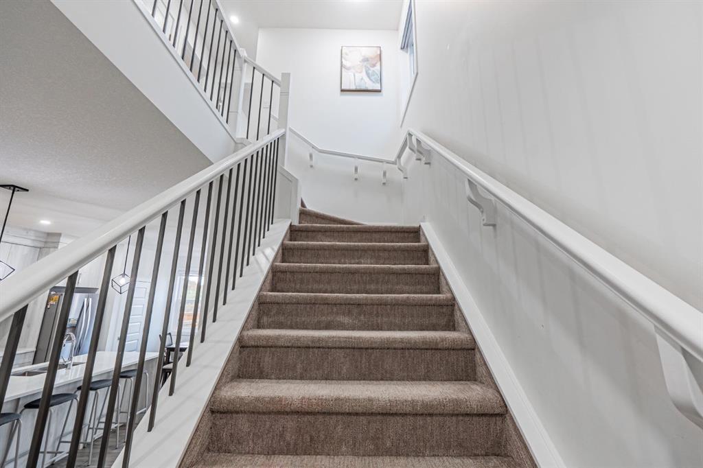 Welcome to this stunning and exceptionally maintained front garage duplex in the sought-after community of Midtown, Airdrie. This beautiful home showcases a modern design, high-end finishes, and a functional layout perfect for families, professionals or investors. With a total of 4 bedrooms plus a den and 3.5 bathrooms, this property offers exceptional comfort, versatility, and value.