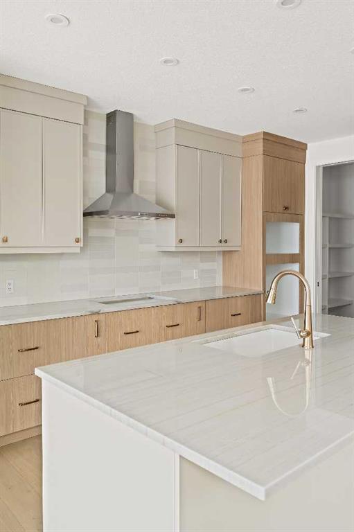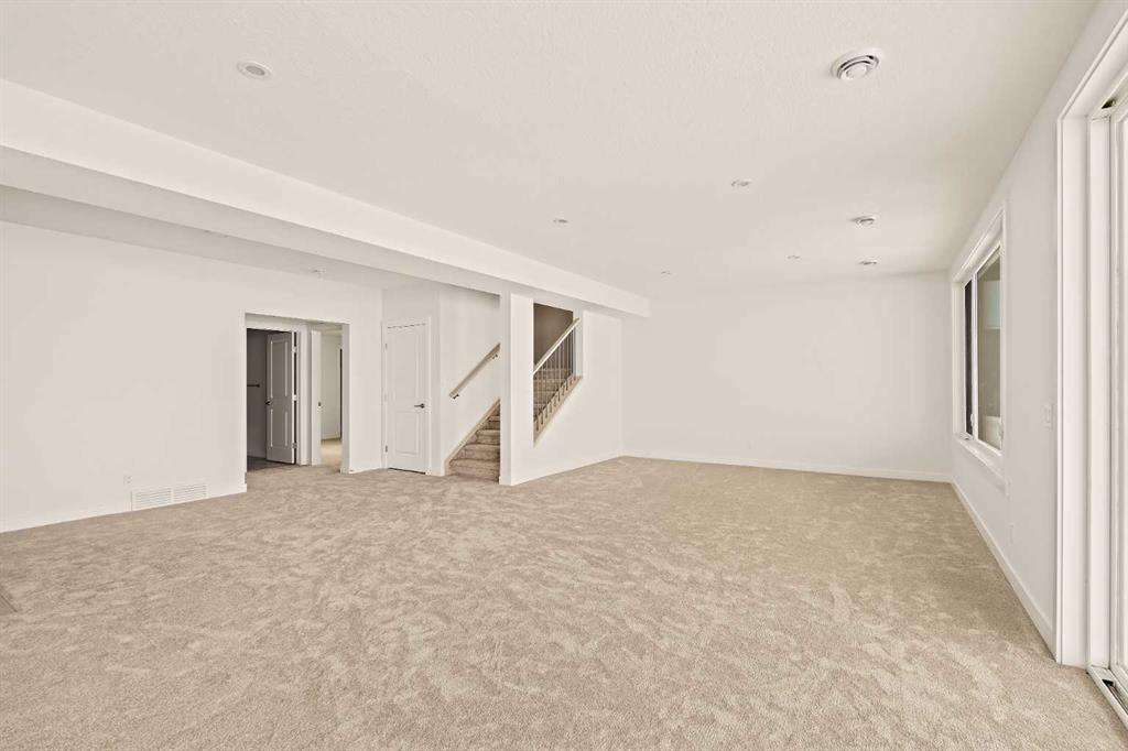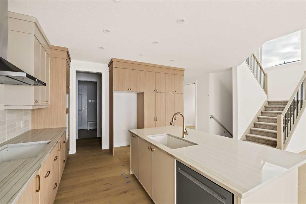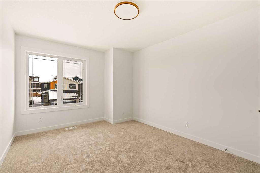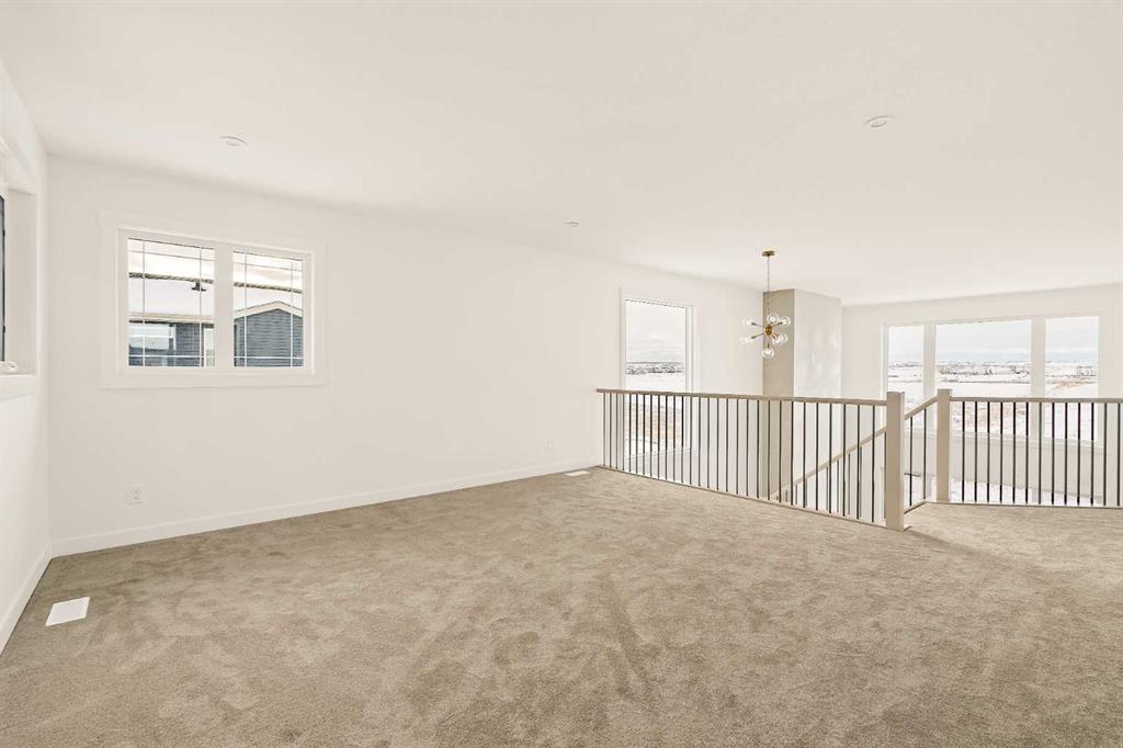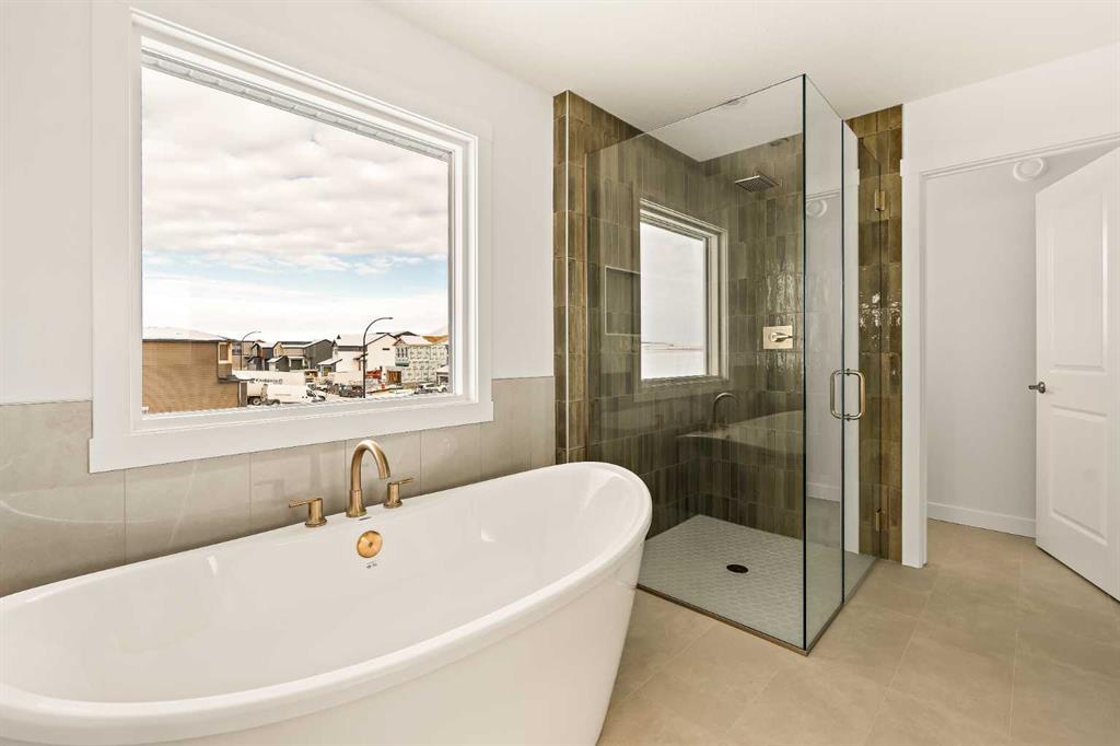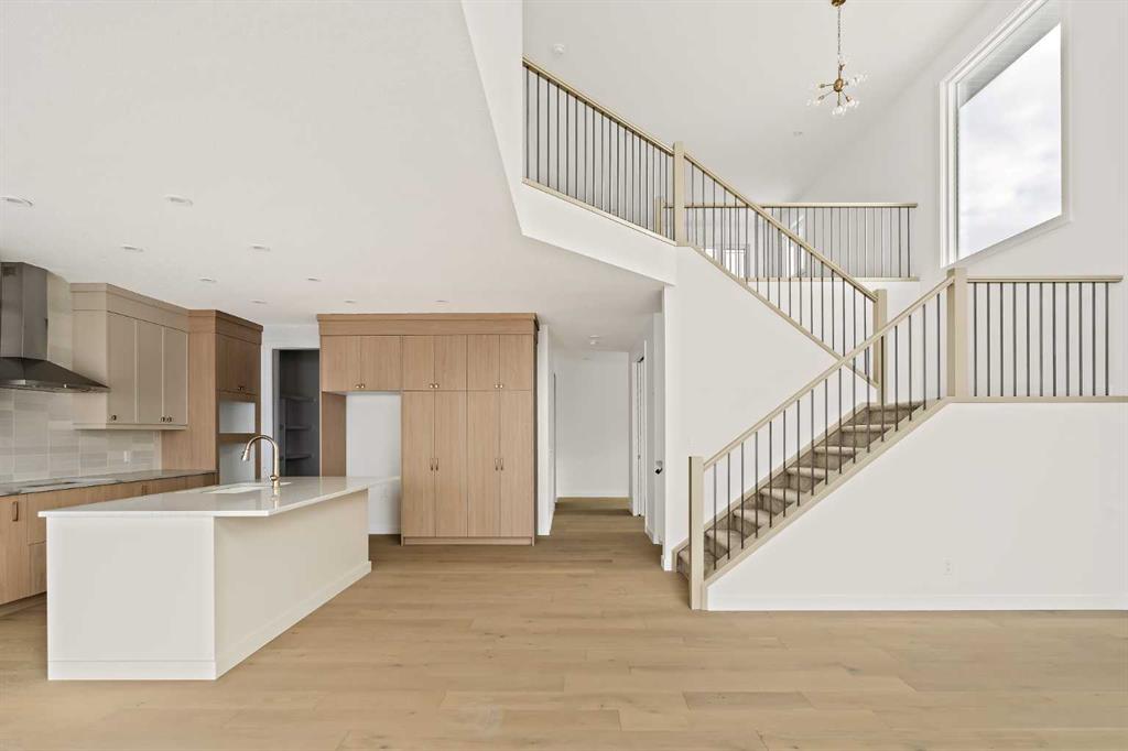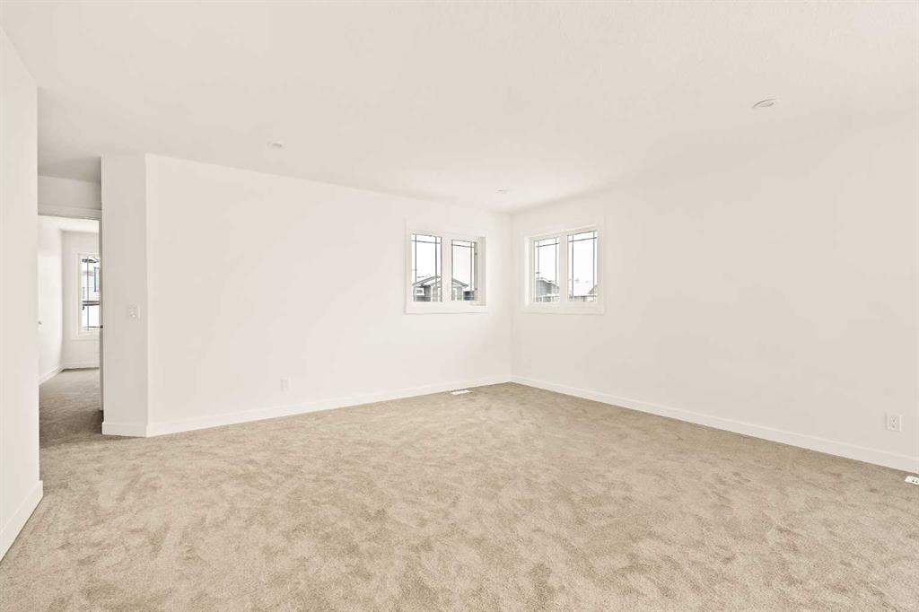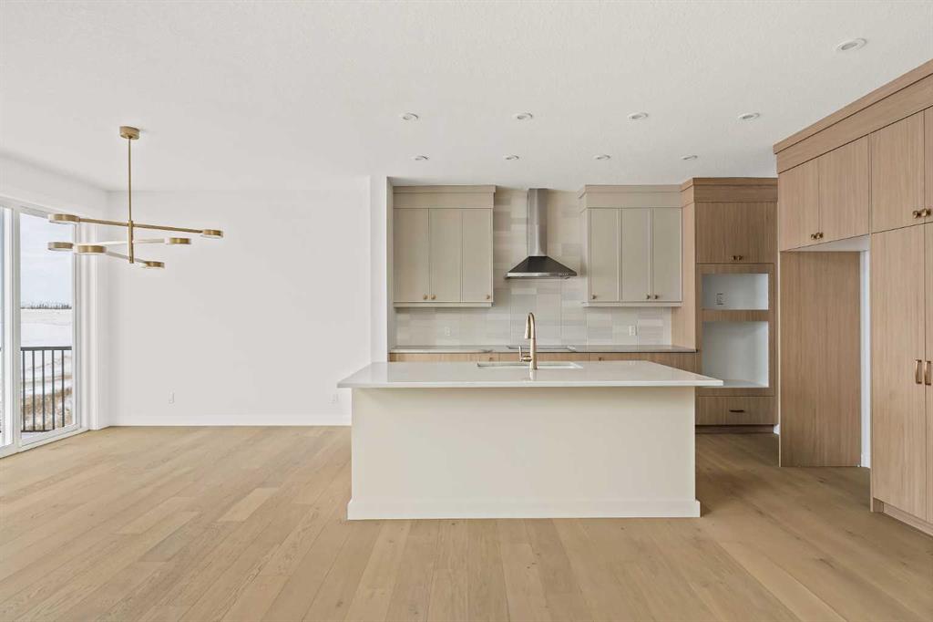 The stunning Savona 3 Estate model by Brookfield Residential is now available in the community of Livingston. Situated on a premium walkout lot backing directly onto green space, this home offers the rare luxury of no neighbours directly behind. This fully developed residence features 4 bedrooms, 3.5 bathrooms, 3 spacious living areas, and a dedicated office, offering the perfect blend of design, functionality, and high-end finishes. Set on a 4,844 sq. ft. east-facing lot, this beautiful property boasts over 3,500 sq. ft. of developed living space across three levels. The main floor features a bright, open-concept layout with 9’ ceilings, 8' doors and hardwood flooring throughout. Expansive rear-facing windows flood the home with natural light throughout the day, creating a warm and inviting atmosphere. The gourmet kitchen is equipped with full-height cabinetry and a premium suite of stainless-steel appliances, including a gas cooktop, chimney-style hood fan, built-in wall oven and microwave, and a French-door refrigerator. A large walk-through pantry adds both functionality and additional storage. The kitchen flows seamlessly into the adjacent dining area, which easily accommodates a full-sized dining set, and the impressive rear great room featuring an open-to-above design and a full-height tiled gas fireplace overlooking the backyard. Completing the main level is a generous front foyer, a versatile office/flex room, a 2-piece powder room, and a rear mudroom with a large walk-in closet for added storage. Upstairs, the primary suite (14’ x 13’) overlooks the backyard and includes a spa-inspired ensuite with a fully tiled glass shower, deep soaker tub, dual sinks, and a walk-in closet complete with storage. Two additional bedrooms, a well-appointed 4-piece bathroom, a large bonus room, and an upper-level laundry room complete this floor. The fully developed walkout basement adds nearly 1,000 sq. ft. of additional living space, including a fourth bedroom, full bathroom, and a bright recreation/media room with large windows. A wet bar and flexible open area make this an ideal space for a home gym, playroom, or entertainment zone. The west-facing backyard offers ample space for children, pets, and outdoor entertaining. A triple-car garage completes the property, providing exceptional storage and secure parking year-round. Backed by Brookfield’s comprehensive builder warranty and the Alberta New Home Warranty Program, this move-in-ready home offers both quality and peace of mind. Located in the vibrant community of Livingston, residents will enjoy access to parks, pathways, and future commercial amenities.