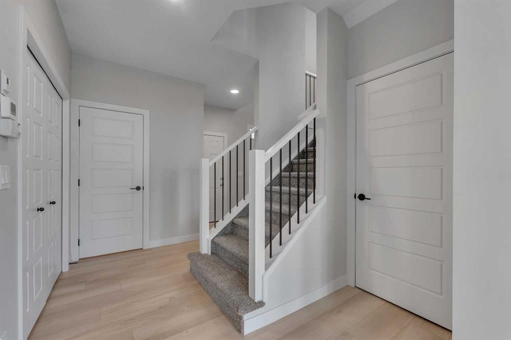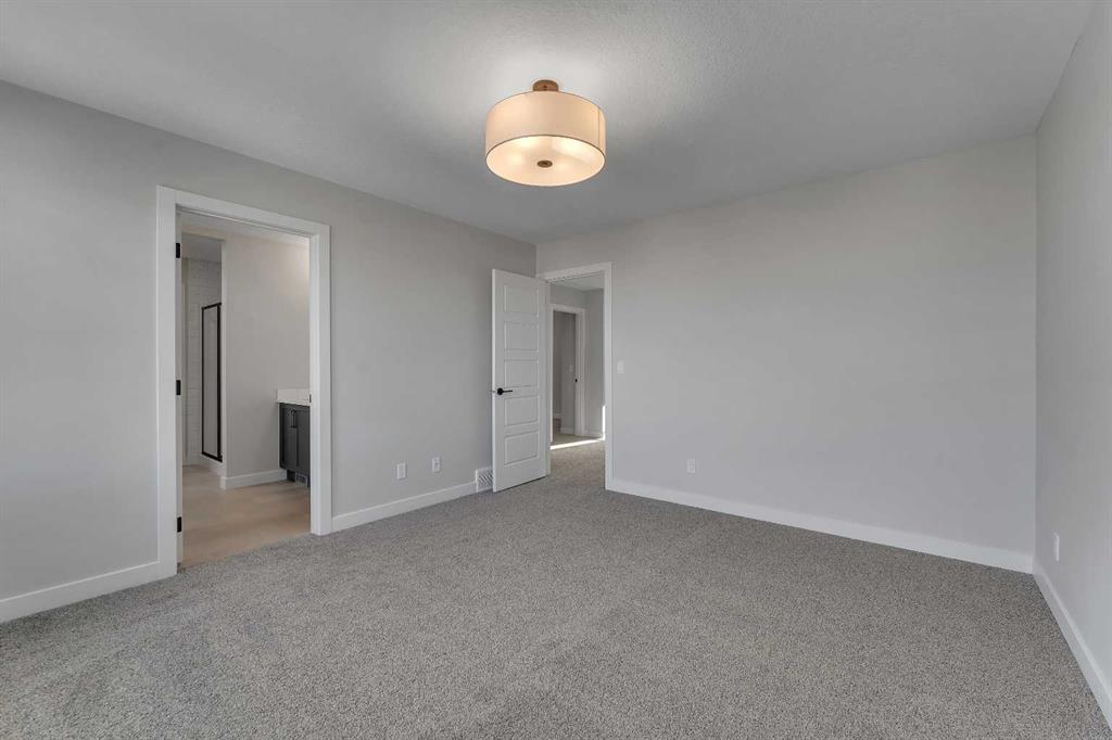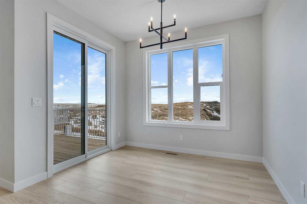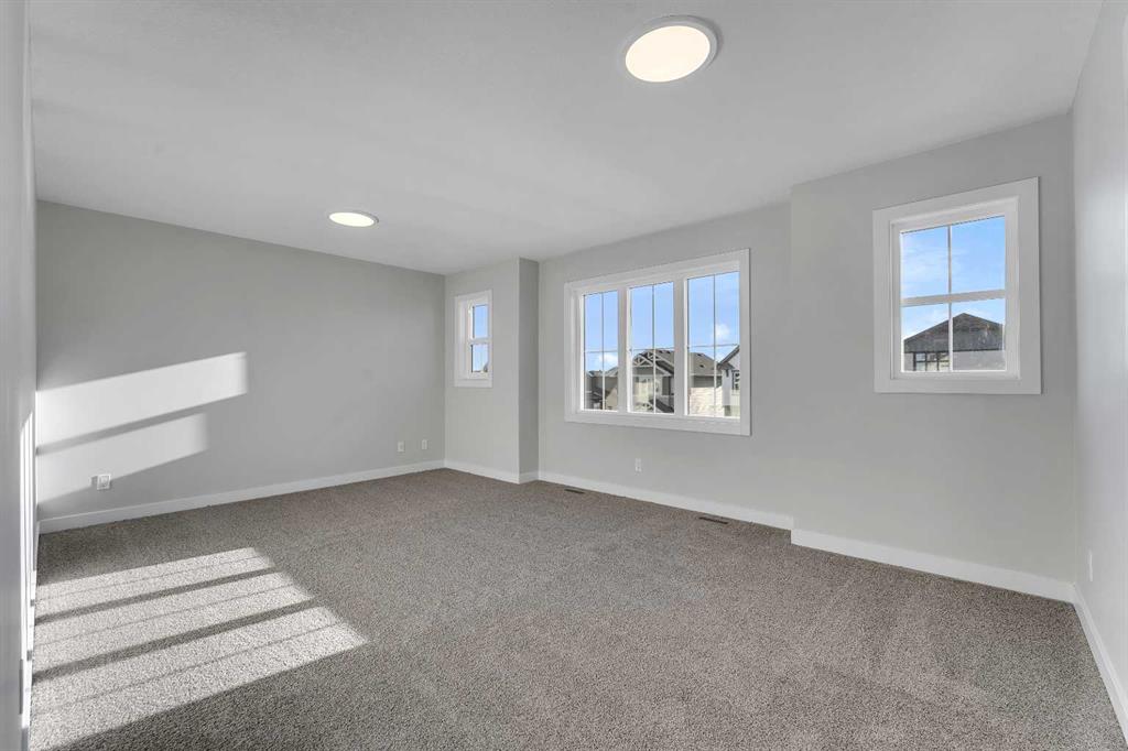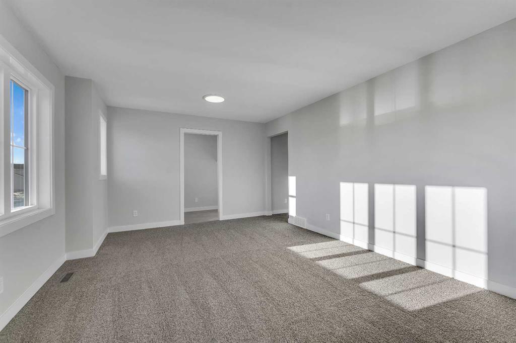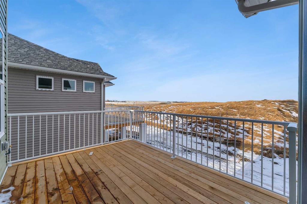 Start the new year off in your brand-new, stunning Alliston at Home new build in Iron Landing. This home offers exceptional design, thoughtful details, and timeless style. With 3 bedrooms and 2.5 bathrooms, and a double garage with an additional tandem parking stall, there's room for your family, vehicles, toys, or hobbies! Step inside to a grand, open-to-above front entrance, showcasing soaring ceilings and wide-plank vinyl flooring that is as beautiful as it is durable, spanning the main floor. Large triple-pane windows surround the bright and airy living area, flooding the space with natural light. The kitchen is a chef's dream, with a corner sink framed by windows, elegant cabinetry, stone countertops, a spacious island, a large pantry, and stainless steel appliances, including a gas range. The kitchen flows seamlessly into the dining and living areas, and from the dining space, you can step out onto your finished deck, complete with a gas line for your BBQ. A convenient powder room is tucked neatly at the front of the home. Venture upstairs, the primary suite offers the perfect retreat with space for a king-sized bed, a spa-inspired ensuite featuring a soaker tub, separate shower, dual sinks, and a large walk-in closet. Two additional bedrooms, a full bathroom, upper-level laundry, and a front bonus room complete the second floor. The walkout basement is unfinished and ready for your personal design ideas. Located in the vibrant community of Iron Landing, this home combines modern living with small-town charm. Enjoy nearby parks, schools, and amenities. Everything you need is close to home. Photos are representative and are of a similar model. Area size was calculated by applying the RMS to the blueprints provided by the builder. Taxes to be assessed*