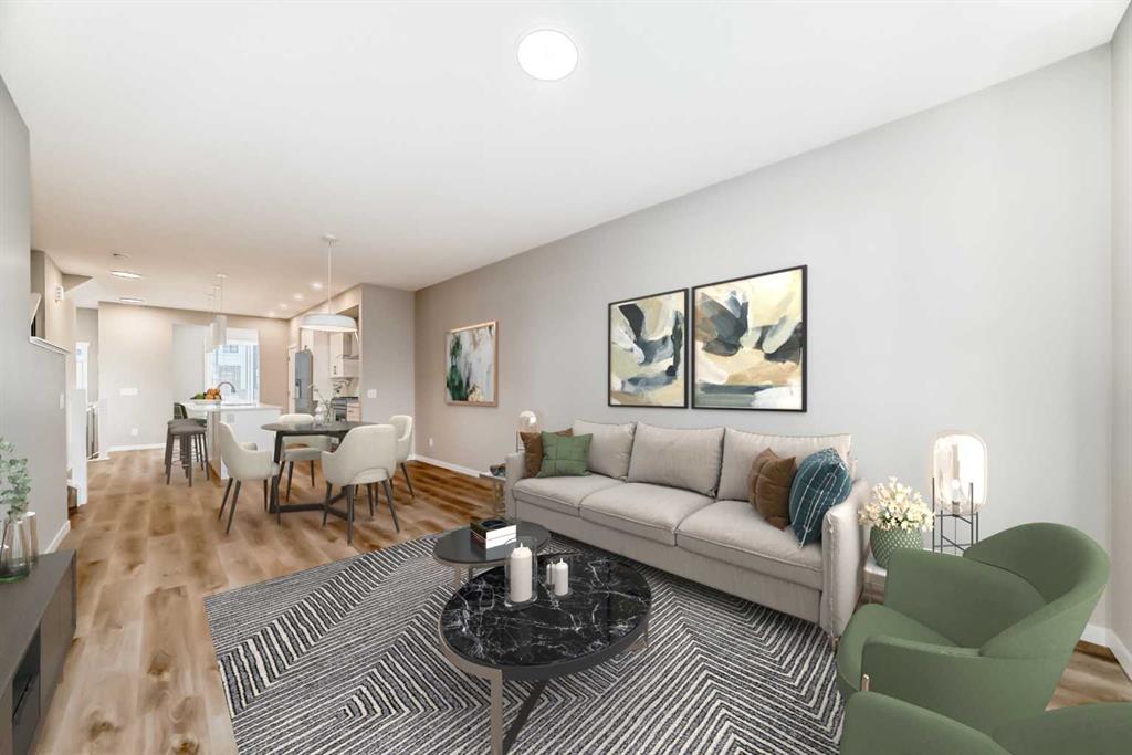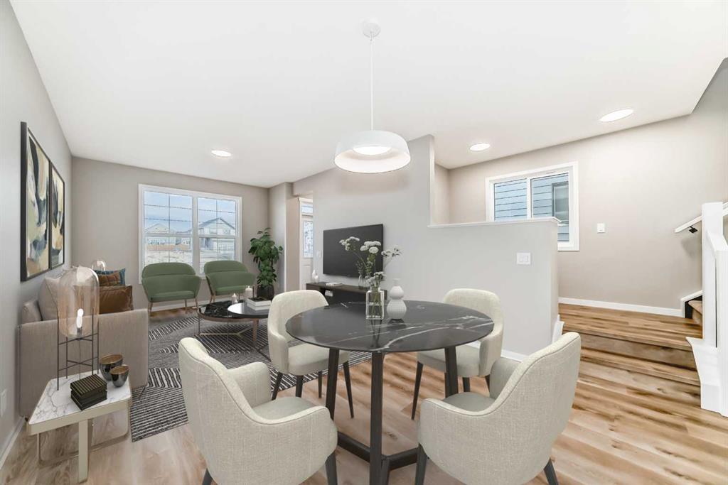 Welcome to this brand-new “Rayn” in Mahogany—a home that blends stylish family living with future flexibility. A separate side entrance offers the option for a private lower-level development or suite down the road (A secondary suite would be subject to approval and permitting by the city/municipality), while the main floor is designed for everyday ease with warm, natural luxury vinyl plank and clean, modern finishes throughout. At the heart of the home, the central kitchen shines with timeless white cabinetry raised to the bulkhead, bright white quartz countertops, and a white marble-style backsplash that wraps the stand-alone chimney hood fan for a seamless, upscale look. Stainless steel appliances and an oversized island make meal prep and casual entertaining effortless. The dining area sits perfectly between kitchen and living—roomy enough for an extended table—while the rear living room enjoys floor-to-ceiling windows and a smart back entry with a 2-piece bath. Just off the kitchen, a versatile flex room adapts to your life (home office, play space, fitness corner), and a raised homework/tech nook overlooks the main floor—organized, functional, and surprisingly fun. Upstairs, a cozy bonus room anchors the level for movie nights or quiet reading. The primary retreat is tucked at the back with an oversized window, a generous walk-in closet, and a chic 4-piece ensuite featuring dual sinks and a full-size shower—finishes you’d expect in a much larger home. Two additional bedrooms are well-proportioned, and the upstairs laundry and linen storage keep day-to-day living simple and tidy. Live the four-season lake lifestyle Mahogany is known for. Centered around Calgary’s largest freshwater lake and a 21-acre beachfront, the community offers private resident beaches, swimming, skating, and year-round events. Stroll the scenic wetlands and extensive pathway network, or head to the Urban Village for coffee shops, restaurants, services, and everyday conveniences. Families appreciate nearby schools and playgrounds; commuters value quick access to Stoney Trail, Deerfoot Trail, and the Seton District’s amenities (South Health Campus, shops, dining, and recreation). Mahogany pairs resort-style living with real-world convenience—making home feel like a getaway, every day.
