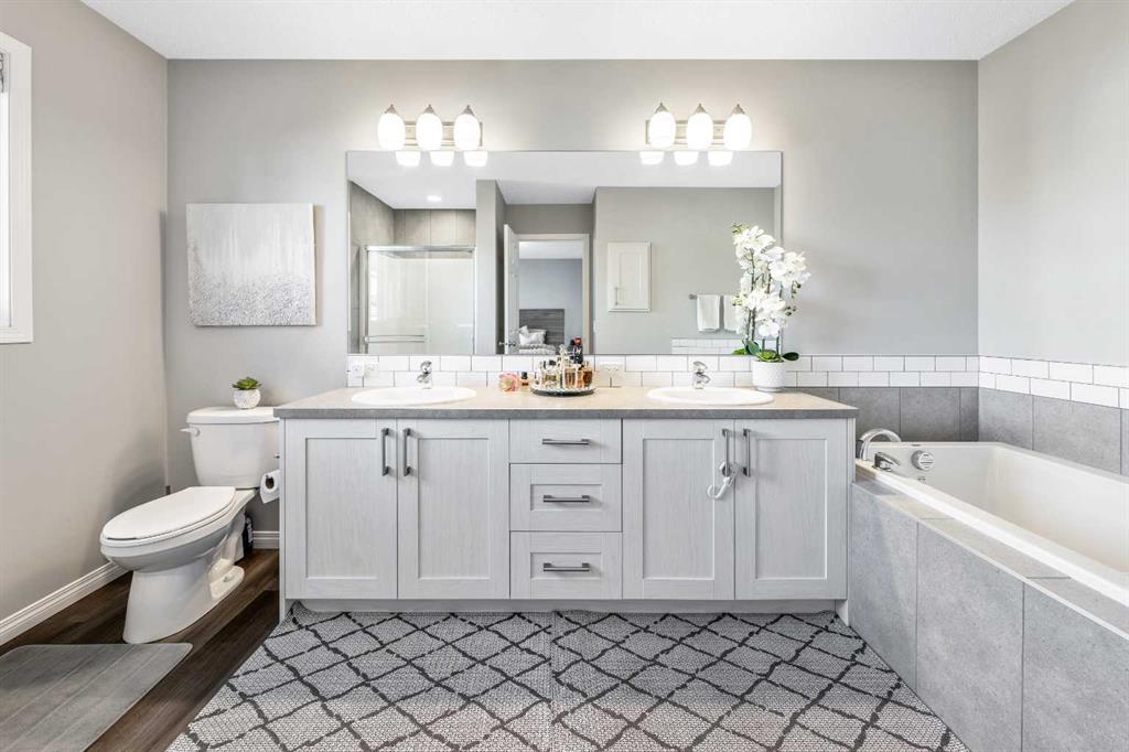 The open-concept layout connects seamlessly to the bright living and dining areas, featuring large windows, a cozy fireplace, and access to a huge extended deck — perfect for summer barbecues or relaxing with friends. A convenient 2-piece powder room completes the main floor. Upstairs, you’ll find three spacious bedrooms, including a stunning primary suite with a walk-in closet and a luxurious 5-piece ensuite featuring dual sinks, a soaker tub, and a separate shower. A bonus room anchors the upper level — ideal for family movie nights or quiet evenings in — along with a laundry area and an additional 4-piece bath. The fully finished lower level expands your living space with a family room, fourth bedroom, full bathroom, and plenty of storage. Additional highlights include 9’ ceilings on both the main and lower levels, central A/C, central vac with kitchen dustpan, triple-pane low-E windows, solar panel rough-in, heat recovery ventilator, and a high-efficiency HVAC system — all designed for maximum comfort and energy savings. The garage is EV-ready with a 240V line already installed, so all you need to bring is your charger! Located close to schools, parks, walking and biking paths, and shopping, this home truly checks every box. Don’t miss your chance to make it yours — schedule your viewing today!