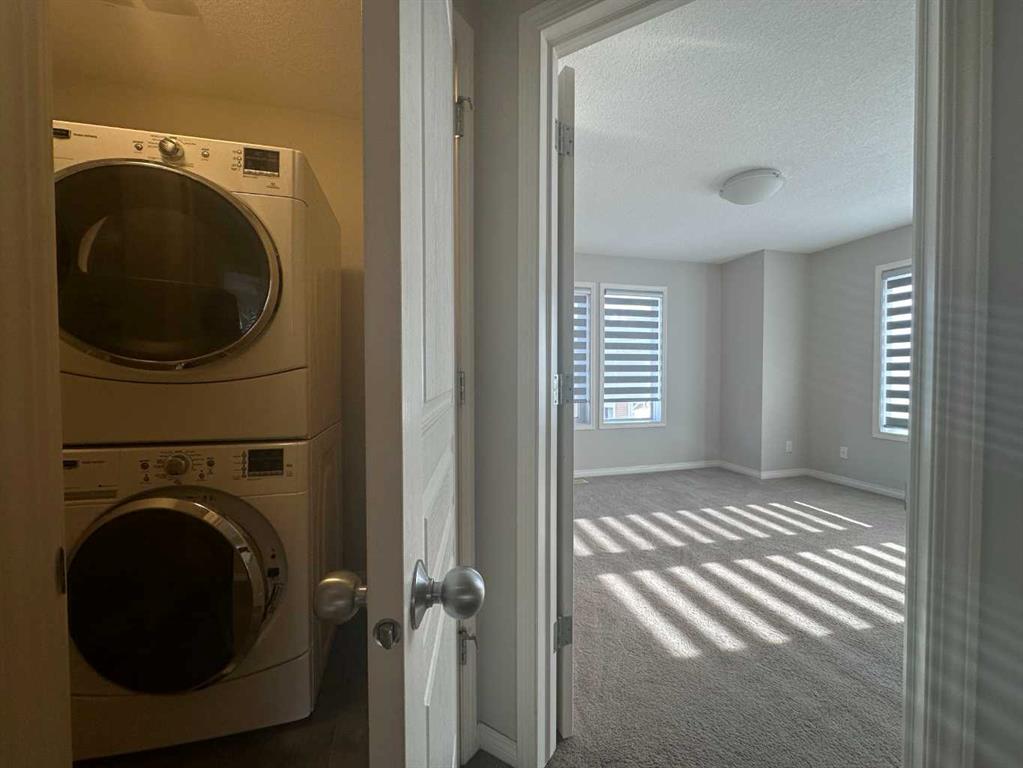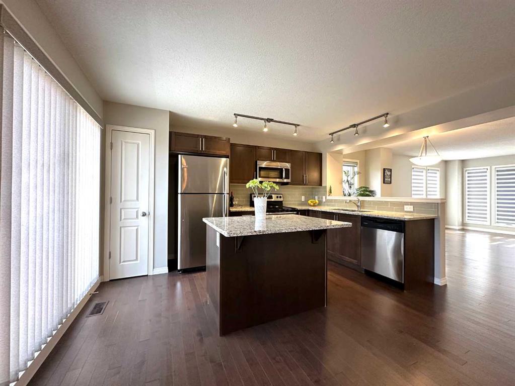 Welcome to this RARE OPPORTUNITY to own a Freshly Renovated Move-in-ready 2-bedroom, 2.5-bathroom, double garage END UNIT townhome in Muskoka! Perfectly located across from Auburn Bay Station Shopping Centre, walking distance to off-leash park, schools, playgrounds, tennis court, and just steps from Auburn Bay’s 43-acre lake, private parks, and beaches. This home offers a perfect balance of quiet, convenience and leisure. Step inside, you’ll be greeted by a modern, warm, cozy, bright, and welcoming atmosphere with FRESH PAINT THROUGHOUT, NEW WINDOWS BLINDS, NEW PARTIALLY FINISHED BASEMENT, and COUNTLESS UPGRADES. The main floor boasts a spacious open-concept living area with expansive sunlit windows and beautiful hardwood floors throughout. The stylish kitchen showcases granite countertops, backsplash tile, modern appliances, a large island, and ample counter space. The kitchen leads to a private balcony and a flex room with a versatile space for a dining area or home office. Upstairs, you’ll find two spacious master bedrooms, each with its own 4 piece en-suite bathroom and walk-in closet, providing ultimate privacy and comfort for homeowners, roommates, or guests. Full laundry room/linen closet is also located on this upper level, providing absolute convenience. The partially finished basement, with plenty of storage options or fitness option, connects to the oversized double attached garage for secure parking and additional storage space. Incredible Upgrades throughout include: Fresh paint throughout; New windows blinds; New partially finished basement; Bathrooms with granite countertops and two added drawers in vanity; Hardwood, tile and carpet flooring; Huge upgraded kitchen with beautiful granite counter tops, gorgeous kitchen backsplash tile, 12” extended island counter top, and stainless steel appliances; Balcony off the main level; Outlet to the basement; Barbeque gas line rough-in for easy barbeque entertainment. Living in the sought-after LAKE community of Auburn Bay and Auburn Bay Station Shopping Centre means convenient shopping; lake-centered lifestyle with walking trails, parks, playgrounds, year-round activities at the community lake; walking distance to the South Health Campus; quick access to Stoney Trail and Deerfoot Trail; easy access to downtown: BRT bus (302), and near future LRT stations, and so much more! Whether