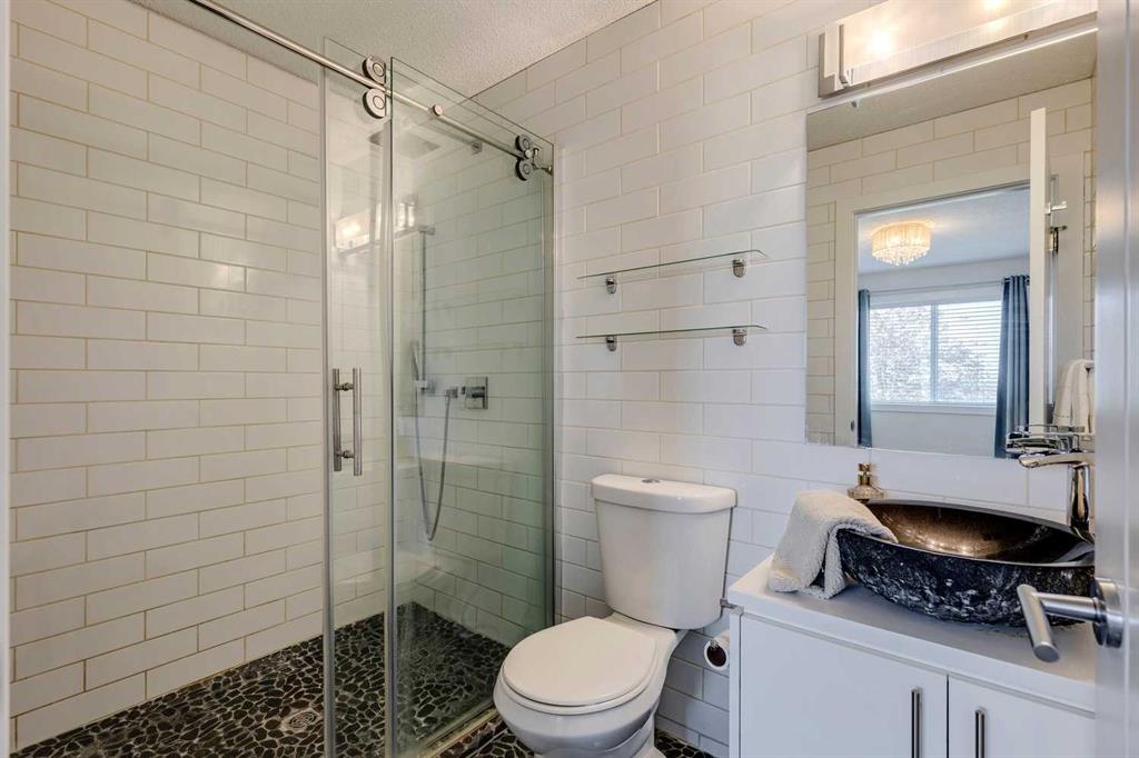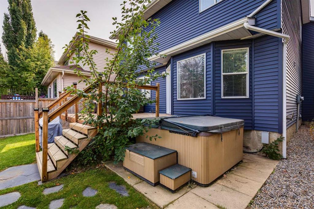 Welcome to this beautifully renovated and meticulously designed home in Lake Chaparral, offering over 2,300 sq. ft. of fully developed living space just one block from the lake. Step into the modern chef’s kitchen, featuring a massive 10-ft island that’s perfect for cooking and entertaining, granite countertops, a five-burner gas stove, stainless steel appliances, oversized cabinetry, built-in wine rack, and a spacious pantry. The open floor plan flows seamlessly into the dining and living areas, making it ideal for hosting family and friends. Upstairs, unwind in the bright and airy bonus room, complete with a cozy fireplace and plenty of space for movie nights (wired for surround sound). The primary retreat offers a stylish ensuite where you can relax in comfort, while two additional bedrooms and a large 4-pc bath complete this level. The fully developed basement extends your living space with a potential guest suite, full bathroom, and generous closet/flex area, ideal for a fourth bedroom, home gym, entertainment room or playroom. Enjoy entertaining outdoors in your private backyard oasis backing onto open green space with no neighbors behind, it feels like country living in the city. The mature landscaping, deck, and firepit area make this yard perfect for summer evenings. Appreciate the convenience of the exterior, roof and gutters all updated in 2023! Tucked away on a quiet cul-de-sac and just a short walk to Lake Chaparral, this home truly has it all. Do not miss this outstanding opportunity