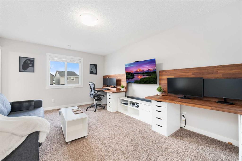 Welcome to this beautifully maintained semi-detached home in the vibrant community of Seton — where style, functionality, and future potential come together seamlessly. Offering 2 bedrooms, 2.5 bathrooms, and a dual primary suite layout, this 2-storey home is ideal for couples, roommates, or anyone seeking a flexible living space designed for modern life. Step inside to a warm and welcoming main floor that opens into a bright living room centered around a stunning brick-facing fireplace, creating a cozy and inviting space to unwind. The open-concept design flows naturally toward the rear of the home, where you’ll find a spacious kitchen and dining area perfect for entertaining. The kitchen features a large central island with quartz countertops, ample cabinetry and counter space, and a walk-in pantry offering fantastic storage. A well-placed 2-piece powder room and thoughtful closet space complete the main level.