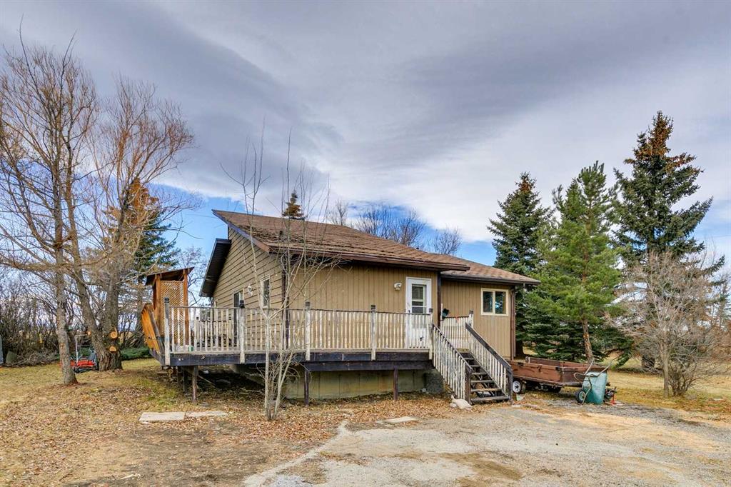 This unique miniature acreage in the hamlet of Naphtha offers 0.5 acres of space with its own well and septic system, surrounded by mature trees and plenty of room to grow your own food. The single-level home features two bedrooms and one bathroom, with a main living area that feels bright and open thanks to soaring vaulted ceilings, large windows, and an abundance of natural light. The kitchen includes knotty pine cabinets, and the laminate flooring adds to the warm, rustic feel. The lower level offers a spacious rec room and potential for an additional bedroom. Situated between Diamond Valley and Longview along Highway 22, this property is just five minutes from Diamond Valley’s Black Diamond side, making it a rare opportunity for anyone seeking space, privacy, and country living with easy access to nearby amenities.