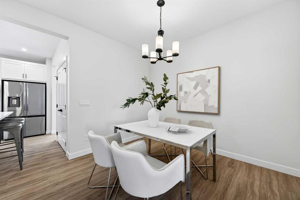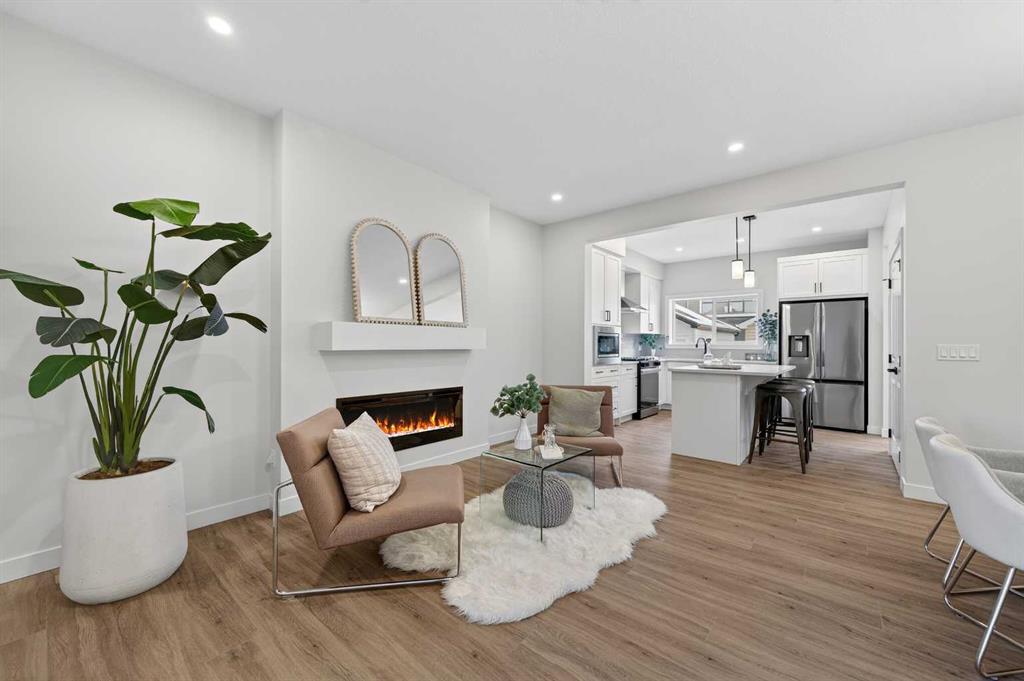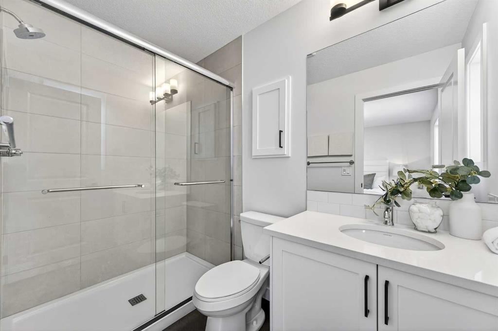 Welcome to The Amber by Genesis Builders, a beautifully designed two-story home offering 1,515 sq. ft. of comfortable living space with an additional unfinished basement with legal basement suite rough-in. The main floor features an open-concept layout with a front flex room, bright great room, and a modern kitchen complete with a central island, quartz countertops, flat-panel cabinetry, and a full stainless steel appliance package. It’s a space that feels inviting and functional, perfect for daily life or entertaining guests. Upstairs, you’ll find three bedrooms, a full bathroom, and a conveniently located laundry area. The spacious primary suite includes a walk-in closet and a private ensuite designed for everyday comfort. This home is equipped with smart-home features including a Ring doorbell, Weiser Smart Code lock, Ecobee thermostat, and Amazon Echo Show. Additional highlights include 9-foot main floor ceilings, upgraded railing, a BBQ gas line, rough-in gas line for the range and a 10' x 10'. The exterior showcases Hardie board siding with Smartboard trim and durable vinyl accents. Located near future parks, pathways, and community amenities, The Amber combines modern design, quality craftsmanship, and lasting value in the heart of Keystone Creek. *Photos are representative and may not reflect the exact finishes of this home. Mood board for colours and selections are in the photos. Rms calculated from builder blueprints provided by the builder. Possession is tentative and scheduled for September 2026.