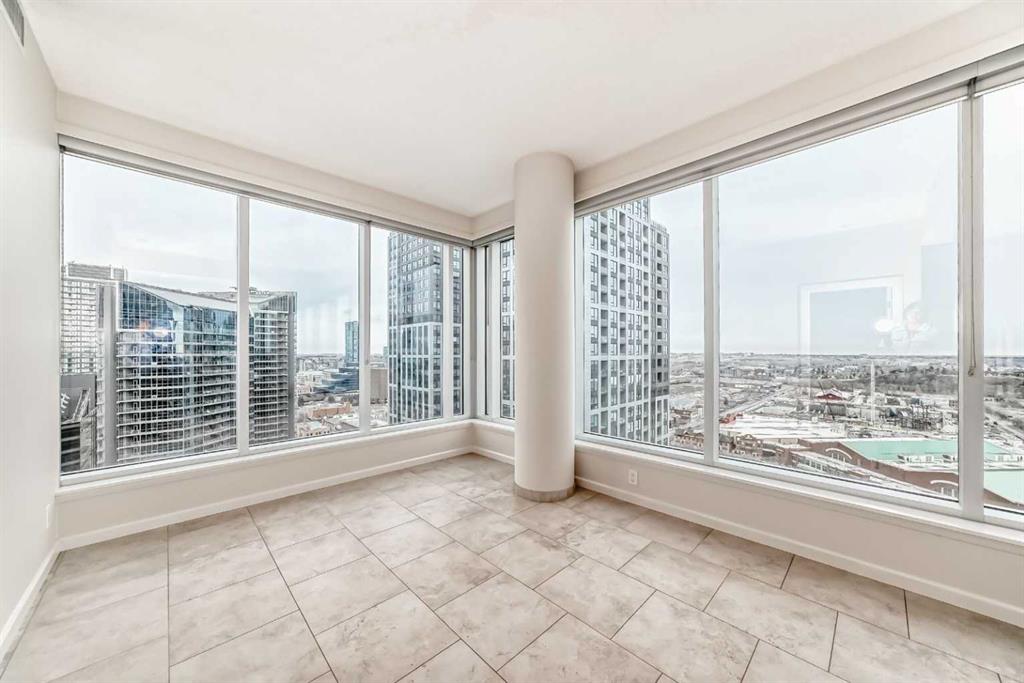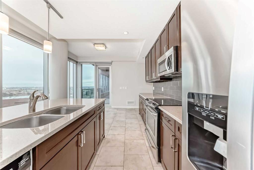 Click brochure link for more details. Experience the best of downtown living in this bright and stylish 22nd-floor corner unit at NuEra. With floor-to-ceiling windows and 9-foot ceilings, this home is filled with natural light and offers panoramic views that stretch for miles — including a front-row seat to the Stampede Grandstand show and fireworks, right from your bed!