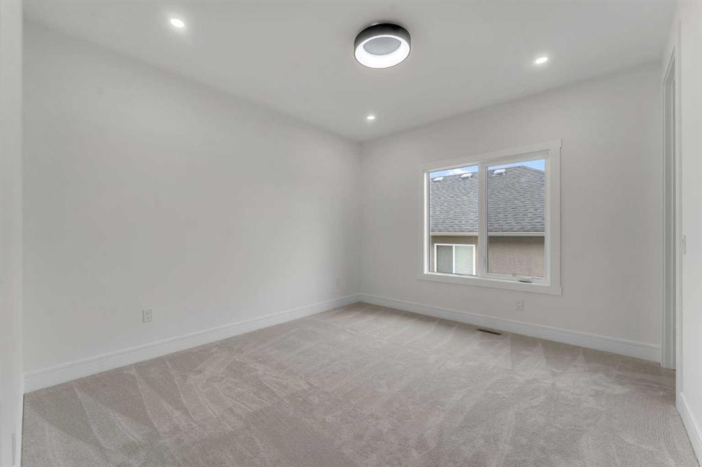 Stunning brand-new custom-built luxury home offering over 5,100 sqft of living space with high-end finishes. This home features total of 6 BEDROOMS, 6 BATHROOMS and TRIPLE CAR GARAGE. Perfectly situated in a quiet cul-de-sac with a sunny south-facing backyard, this home combines style, space, and functionality. The main floor features soaring 10-ft ceilings, an open-concept layout with a bright living room, formal dining area, spacious family room, and a large main-floor office/den. The chef’s gourmet kitchen boasts quartz countertops, premium stainless-steel appliances, elegant cabinetry, and a separate spice kitchen. A full bathroom and premium flooring complete this level. The upper floor offers four bedrooms, including TWO MASTER SUITES each with luxurious ensuites and walk-in closets, plus two additional bedrooms, a full bathroom, and a large bonus room perfect for family relaxation or entertainment. The fully finished walkout basement is designed for entertaining, featuring a spacious rec room, custom wet bar, two bedrooms, and two full bathrooms — ideal for guests or extended family.