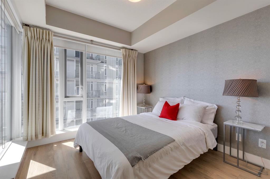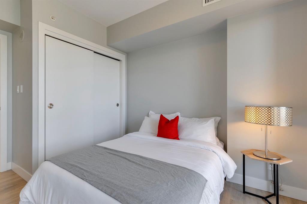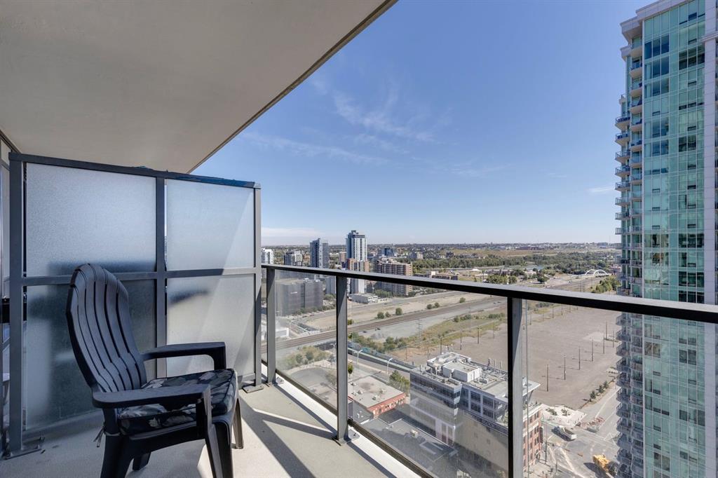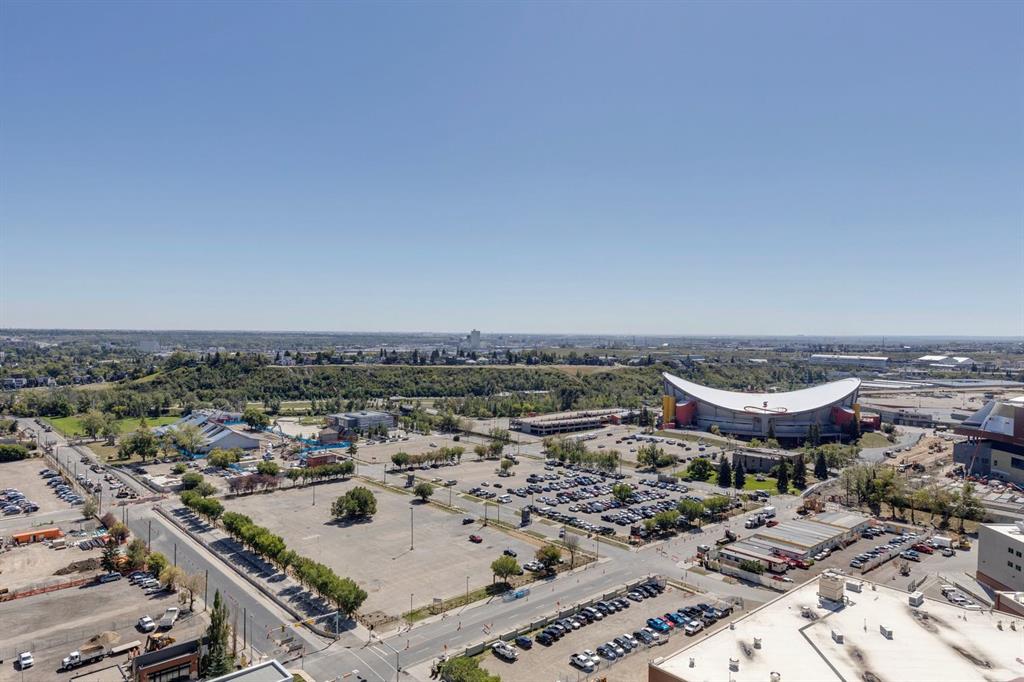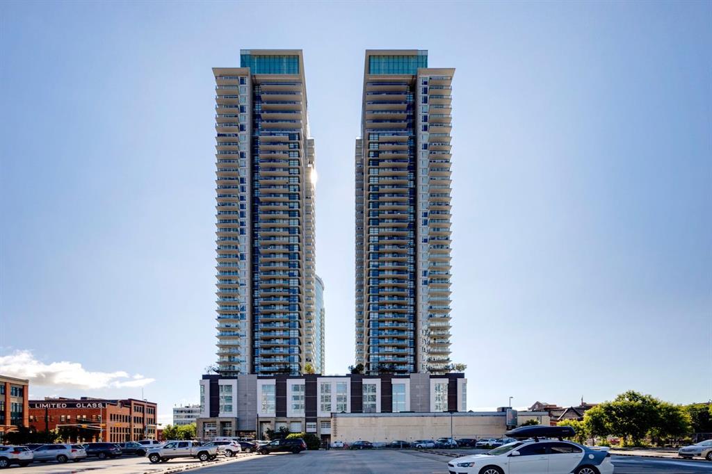 Welcome to this luxurious 23rd floor CORNER UNIT in the prestigious Guardian North building of downtown Calgary. This exceptional residence offers PANORAMIC East River views and Stampede Grounds views from its TWO BALCONIES. The suite features two spacious bedrooms and two full bathrooms, including one ensuite. The gourmet kitchen features a LARGE QUARTZ ISLAND, high-end stainless steel appliances and built-in European-styled cabinetry. FLOOR-TO-CEILING windows surround the open-concept living room and dining area, enhancing the space with plenty of natural light. The unit also features one titled UNDERGROUND PARKING stall, IN-SUITE LAUNDRY, a separate storage locker, concierge services, and fantastic AMENITIES including a social lounge, garden terrace, gym with squat racks, and a well-equipped workshop. Located in the trendy neighbourhood of Victoria Park, you'll be steps away from ICONIC LANDMARKS including the Saddledome, Stampede Park, the National Music Centre, Calgary's renowned Central Library and BMO Centre. Embrace the epitome of urban living in this exquisite 2 bedroom unit that effortlessly combines luxury, comfort, and convenience! All furniture is negotiable.
