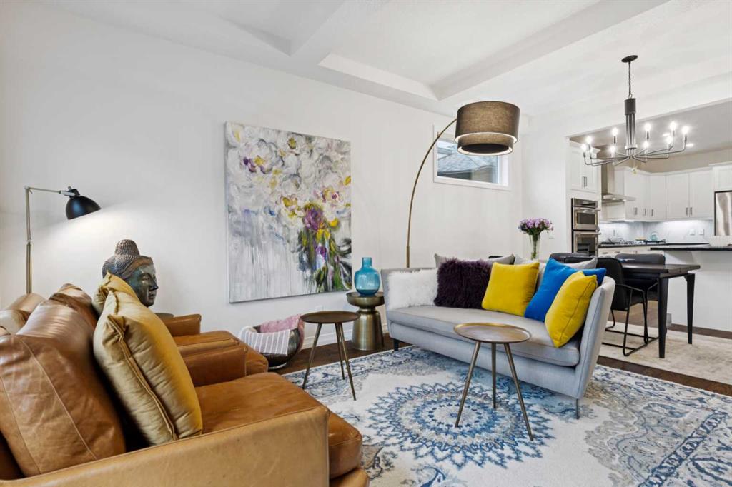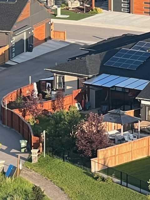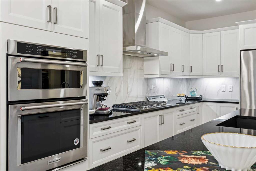 Discover exceptional single-level living in this beautifully upgraded bungalow villa in River’s Edge. Set on a quiet cul-de-sac along the Bow River, Riviera Court offers immediate access to parks, pathways, and the Trans Canada Trail, creating a peaceful, nature-rich setting. With no neighbours behind and a forested environmental reserve as your backdrop, the location is truly one-of-a-kind. Built by Jayman with energy efficiency and low-maintenance living in mind, the home features triple-pane windows, active solar panels, a dual-zone furnace, UVC air purification, tankless (on demand) hot water, an EV plug-in, and a Ring doorbell system. Inside, the residence is loaded with premium upgrades—from the high-end built-in appliances to custom closet fittings, extensive landscaping, and a beautifully designed entertainment wall with fireplace on the lower level. Fresh professional paint (2025) and new Hunter Douglas honeycomb window coverings add to the turnkey appeal. The main floor welcomes you with an open plan highlighted by high ceilings and expansive windows. A gracious entry with storage bench leads to a versatile flex room perfect for an office or den. The bright, stylish kitchen offers shaker cabinetry, a large island with seating, pantry with pull-outs, and stainless appliances including a built-in oven and gas cooktop—ideal for any home chef. The adjoining living and dining spaces enjoy serene views of the landscaped yard and treed escarpment. The upgraded primary suite includes indirect lighting, a ceiling fan, a luxurious 5-piece ensuite with double sinks, soaking tub, and walk-in shower, plus a custom walk-in closet with drawers, shelving, and abundant hanging space. A powder room and heated single attached garage complete this level. The fully developed lower level adds outstanding functionality with a spacious family room, two large bedrooms, a den/office, full bath, and generous storage. Laundry is currently located here but can be moved to the primary closet if desired. Outdoor living is exceptional on this deep, sunny southeast-facing lot. Professionally landscaped, the yard features a large upper deck with power sunshade, stone terrace with covered gazebo, mature trees for privacy, perimeter garden beds, and an irrigation system. All this with no condo fees. An outstanding opportunity in an unparalleled setting—welcome home.