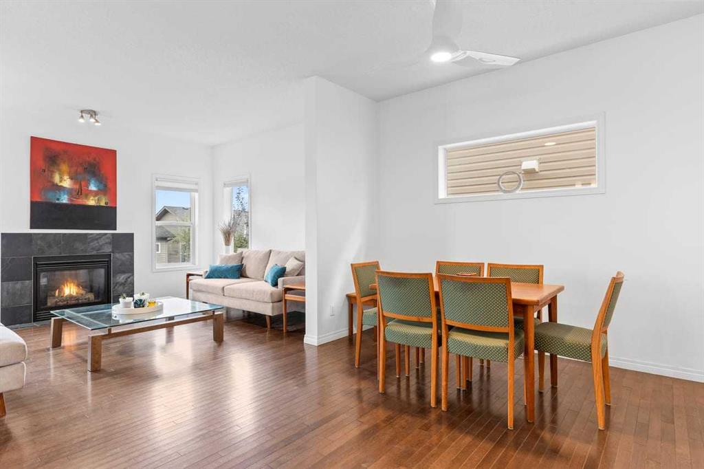 The main floor features high ceilings and an open-concept layout that flows seamlessly from the living area to the kitchen and backyard. The chef’s kitchen includes granite countertops, a gas stove, premium stainless-steel appliances, and a walk-through pantry connecting to the laundry area and double garage. The living room, centered around a cozy gas fireplace, opens to a fenced backyard with a gas BBQ hookup—perfect for gatherings and summer evenings.