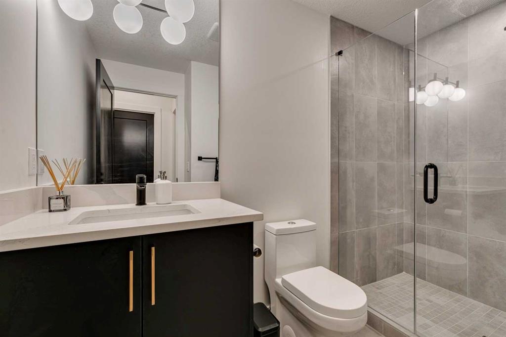 Why move to NYC when you can get the ‘feel’ right here in Killarney?!?! Modern luxury meets function in this stunning Detached Single Family 2 Storey home with over 2,600sqft of living space adorned with luxury touches throughout! Great curb appeal on a stunning street, this classic exterior has charm and grace, then the Top of the Line specs in the open concept Main make you feel relaxed and at home! Welcoming Foyer, super huge windows with black trim shed natural light throughout all day long. The Dining Room and kitchen flow seamlessly, oversized pantry is a lifesaver, allows the oversized island to be used for prep by the Chef and socializing when entertaining! With natural wide-planked Hardwood Floors throughout most of the Main and the 2nd Floor, 10 ft ceilings on the Main, 9 ft ceilings up, this home will please All! Custom kitchen cabinetry provides a modern yet industrial feel with glass doors on some cabinets, Top of the line Stainless Steel appliances, adorned with Quartz C-tops, as is the island. Such a nice mix of black, gold, tumbled brick and natural woods! Custom lighting throughout, be sure to look for the Art TV as well as the other attached TVs and built-in speakers – great for entertaining, setting the mood and just plain relaxing! The Living Room and Breakfast Nook are a perfect size, with large windows once again looking out to the private yard full width deck, complimented by a brick-faced Fireplace. The Mudroom is so smart, allowing space as the family comes in from the insulated to paint Double Garage off the rear paved lane. Turf grass is easy for cleanup for the family pup! The large deck has room to hang, Duradek finishing. Upper level offers three large Bedrooms, each with their own walk-in closets. The Primary Bedroom with coffered ceiling is luxurious, with a large walk-in closet, 6-piece Ensuite with the full spa feel: Double sinks, infloor heat, separate Soaker Tub and then oversized Steam shower with bench – very nice! Laundry up is also a good size, much needed! Lower level is fun, with wetbar and a wine cellar all ready to go! Media Room with attached TV & speaker, what a great area! Gym area with potential TV set up, 4th bedroom down is very large, again with walk-in closet! This home offers all you have been looking for, just move in!