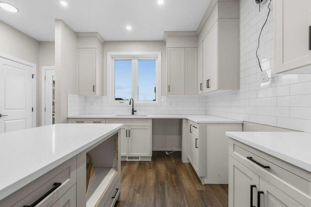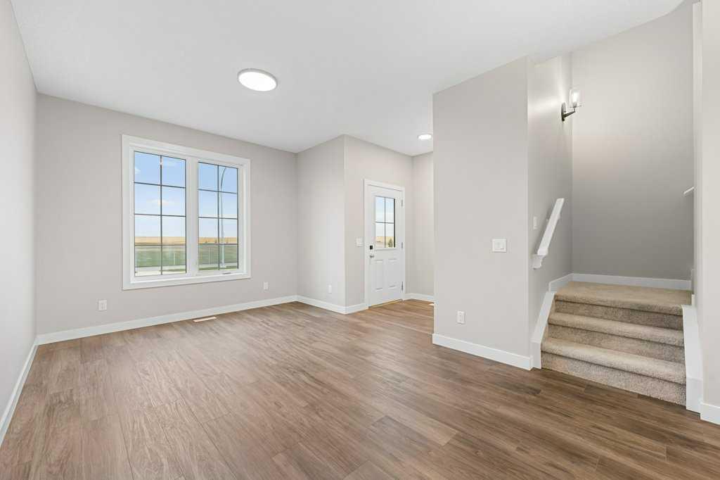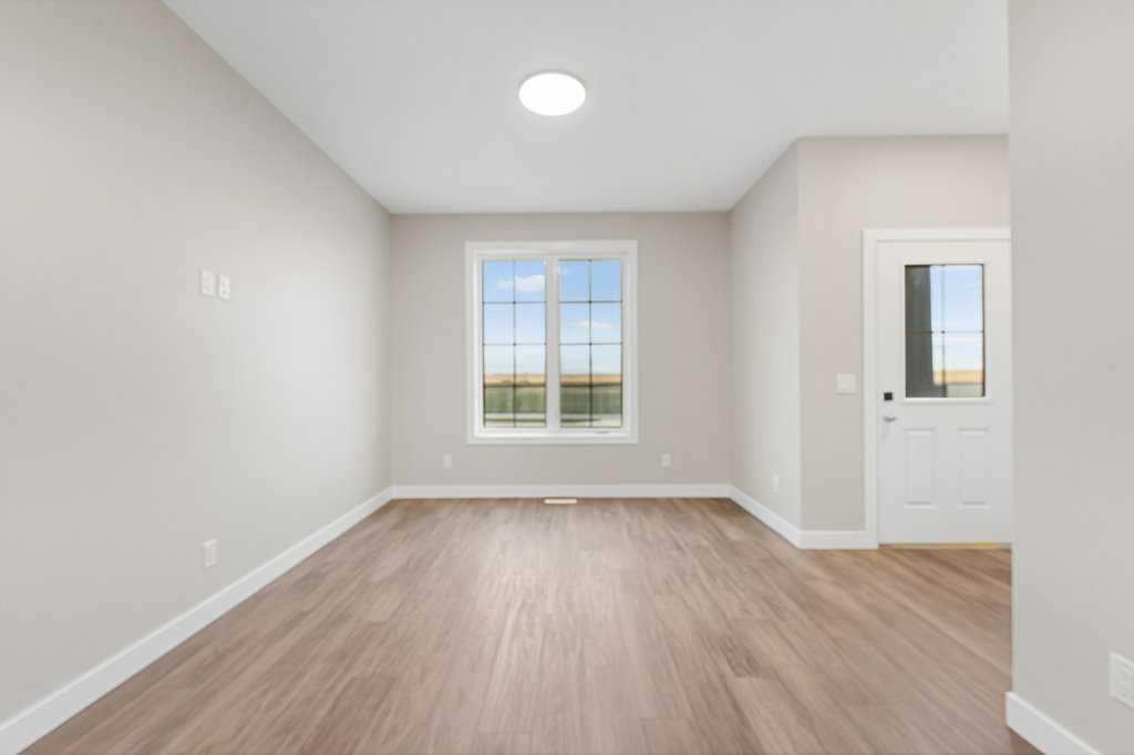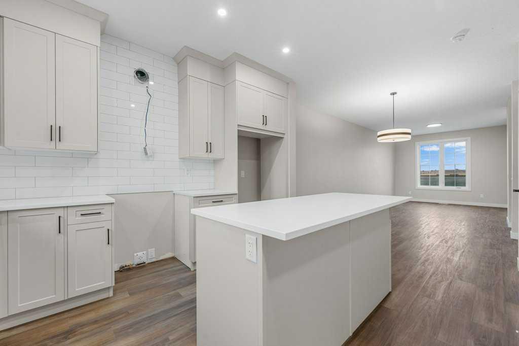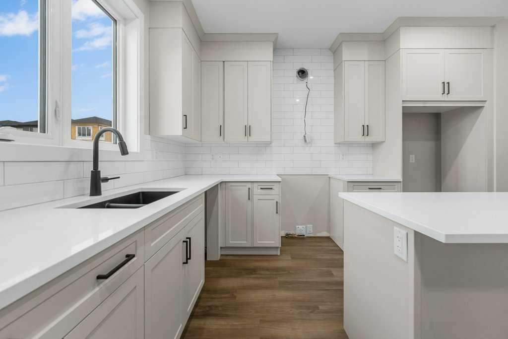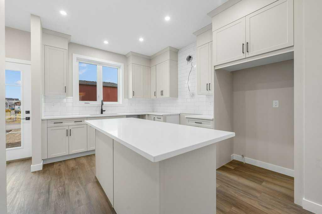 Move-In Ready | Corner Lot | Built by Broadview Homes | 1,395 Sq. Ft | 3 Bed, 2.5 Bath | Premium Finishes | Quartz Countertops | Appliance Package Included | High Ceilings | Upper-Level Laundry | South-Facing Backyard | Separate Side Entrance | Suite Potential | Welcome to The Newport 4 by Broadview Homes — a move-in ready, two-storey detached home offering 1,395 sq. ft. of modern, open-concept living in the highly sought-after community of Ambleton NW. The main floor showcases high ceilings, luxury vinyl plank flooring, and a bright, front-facing living room that seamlessly connects to the dining nook and stylish corner kitchen. The kitchen is a showstopper, featuring sparkling granite countertops, a central island, full-height cabinetry, a spacious pantry, and the builder’s appliance package.Upstairs, the primary suite serves as a private retreat with a 4-piece ensuite and walk-in closet. Two additional bedrooms, a full bath, and the convenience of upper-level laundry complete this thoughtful layout. Built with quality craftsmanship and future flexibility in mind, this home includes 100% vinyl windows, engineered flooring, and designer finishes throughout. With a separate side entrance, 9’ basement ceilings, and rough-ins for a future legal suite (subject to city approval), the lower level is ideal for a mortgage helper or multigenerational living. Situated on a sunny south-facing corner lot with alley access and a rear gravel parking pad, this property combines low-maintenance living with room to grow. Enjoy the perfect balance of style, comfort, and functionality — all in one of Calgary’s most vibrant new communities. Don’t miss your chance to call this beautiful Broadview home your own — book your private showing today and experience the best of contemporary living in Ambleton NW!