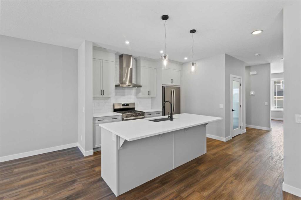 Located within the popular new NW community of Ambleton, this fabulous Brand New Home is sure to impress. 9 Foot Ceilings and Luxurious Vinyl Plank Flooring sprawls through the Front Entrance into the Open Concept Kitchen, Dining and Living Room as well as the east facing flex room on the Main Floor. QUARTZ countertops, Stainless Steel Appliances, GAS STOVE, FULL CEILING HEIGHT Cabinetry with Crown Molding and a glass door Pantry Closet complete the modern Kitchen. A Spacious Dining Room and Living Room are great for Relaxing or Entertaining in. The upstairs features a center Bonus Room that Separates the Kids Rooms from the Parents' Master Bedroom. Plush Carpets cushion your Toes and Feet on the Upper Floor and Oversized Windows allow Sunshine to Beam into every room. There is a shared 4 Piece Bathroom and a large laundry room on this level as well. The Master/Primary Bedroom is Gigantic and can accommodate a King Size Bed with Night Tables and a Dresser or Two. There is also a walk-in Closet with a large window and a 4 Piece Ensuite Bathroom that completes this suite. Heading downstairs to the undeveloped basement, the Separate Entrance, 9 foot Ceilings, second Furnace, second Washer & Dryer Rough-ins, Bathroom Rough-Ins, Kitchen Rough-ins are conveniently placed for a future two bedroom basement development. The backyard comes with a double car parking pad, which can accommodate a future double detached garage. This west backyard amazing home is also conveniently located cross a playground, minutes away from the schools, public transit and amenities, including Carrington Shopping Center, Creekside Shopping Center, Walmart, Beacon Hill Costco, and T&T Asian Supermarket. It also has quick access to the Stoney Trail Highway and the Deerfoot Highway. Whether you want to Live Up and Rent Down, lease out the entire house, or live with multiple generations, this is the perfect home for you. Don't miss out on this gorgeous home! Book your showings today!