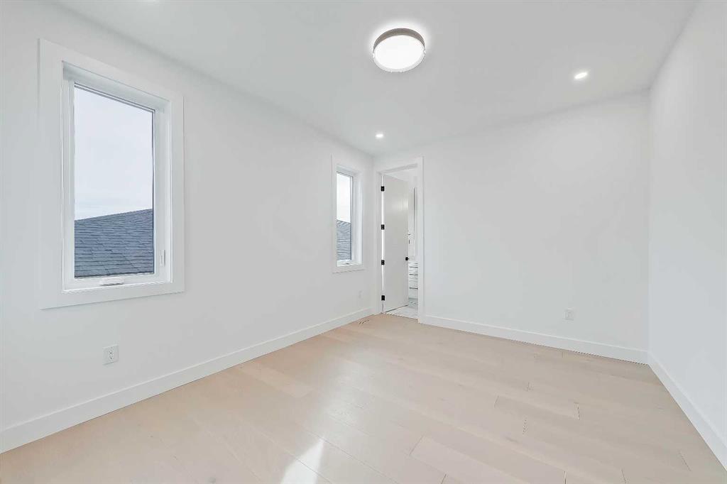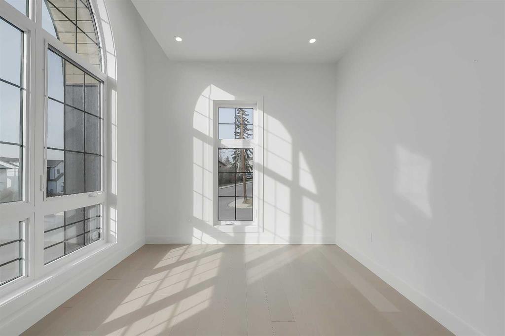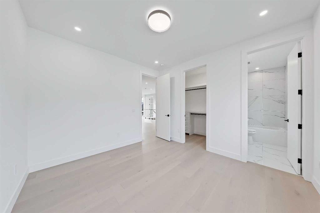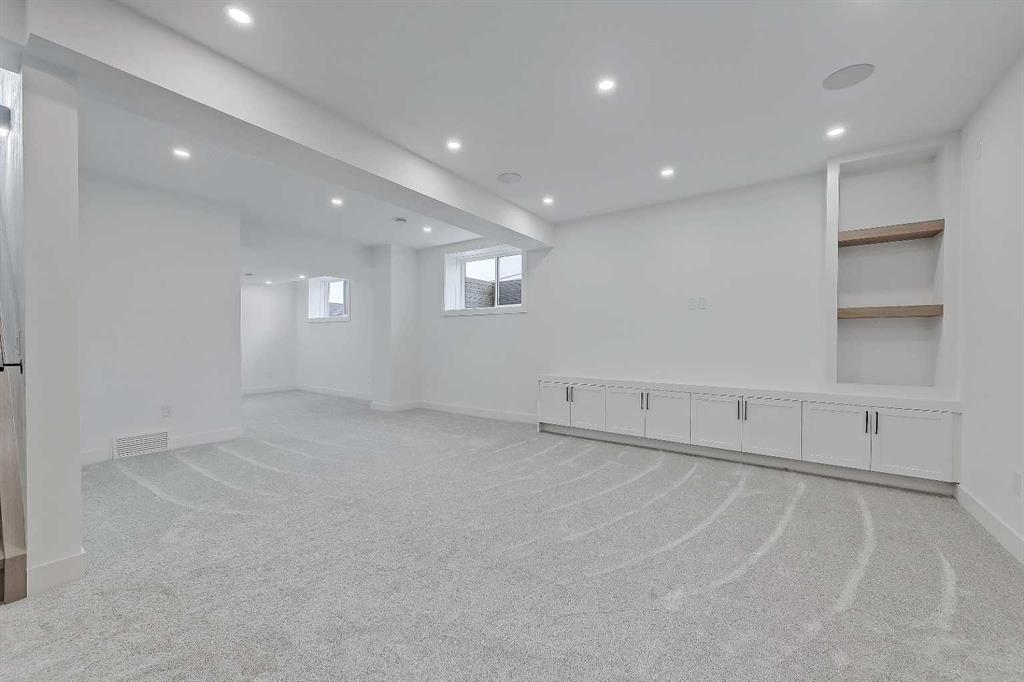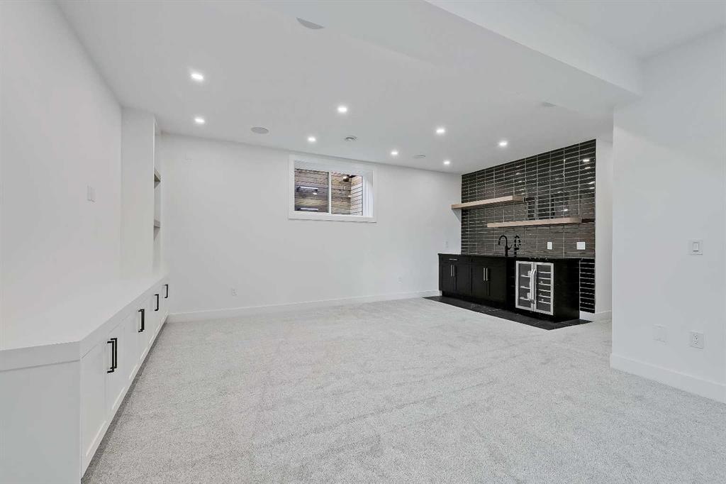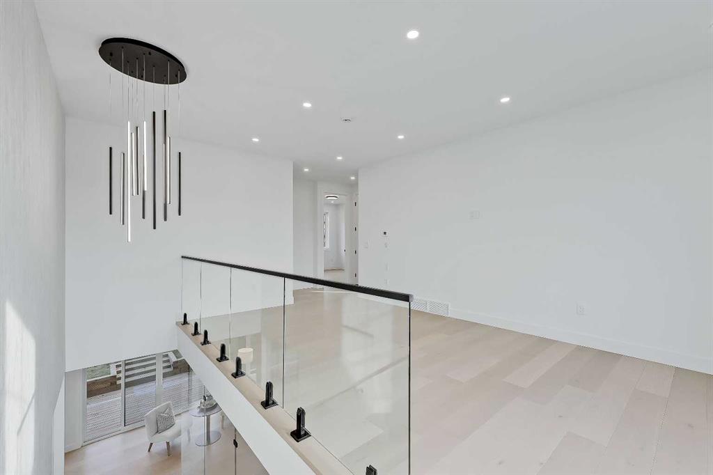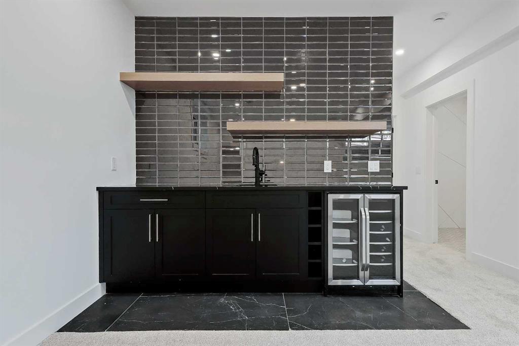 Perched high above the river valley in MONTGOMERY, this newly built estate home by NX HOMES blends bold architectural design with sweeping west-facing views and refined, contemporary comfort. Every detail has been thoughtfully curated—from the striking arched windows that flood the interior with natural light to the custom oak staircase and the cohesive balance of texture, tone, and proportion that defines each space. This is a home that feels both commanding and serene—a perfect match for its hillside setting just minutes from Market Mall, the University of Calgary, and the city’s vibrant northwest core. Inside, soaring 10-foot ceilings and a gallery-style foyer set the tone for what’s to come. The main level is anchored by a CHEF’S KITCHEN designed for gathering and performance, featuring waterfall-edge stone counters, high-end stainless steel appliances, and a large central island with seating for casual conversation. The BUTLER’S PANTRY offers extended prep and storage space, while the open-concept layout connects seamlessly to the dining area and a sunlit great room warmed by a modern gas fireplace. Oversized west windows frame mountain views, and double doors extend the living space outdoors to a generous upper deck—perfect for summer evenings and golden-hour sunsets. A front office, stylish powder room, and discreet storage complete this level with purpose and grace. Upstairs, three BEDROOMS WITH IN-FLOOR HEATED ENSUITES create private retreats for family and guests alike. The PRIMARY SUITE captures the west horizon with expansive windows and vaulted ceilings, a custom walk-in closet with built-ins, and a SPA-INSPIRED ENSUITE featuring a freestanding soaker tub, dual vanities, and an oversized glass-enclosed shower. A front-facing BONUS ROOM provides additional flexibility for a reading nook or play space, while the full-size LAUNDRY ROOM with sink keeps the upper level as functional as it is refined. The FULLY FINISHED WALK-OUT BASEMENT extends the home’s living and entertaining potential. Here, a sleek WET BAR opens to a spacious recreation and movie area—an ideal backdrop for game nights and gatherings. There’s also a fourth bedroom with a nearby full bath, a dedicated MUDROOM WITH BUILT-INS, and a rough-in for IN-FLOOR HEATING to keep every corner warm through Calgary’s winters. Every element of this property reflects craftsmanship and quality, from the ENERGY-EFFICIENT SYSTEMS and superior insulation to the TRIPLE ATTACHED GARAGE with R/I for gas heater and the low-maintenance landscaped exterior. Outdoor lighting highlights the home’s modern architecture, while the tiered front approach and private rear yard enhance curb appeal and usability. In a community prized for its views, parks, and proximity to downtown, this home stands apart—not just for its design, but for how it lives. Elegant yet welcoming, contemporary yet timeless, it’s the rare opportunity to own a truly ONE-OF-A-KIND CUSTOM BUILD IN MONTGOMERY.