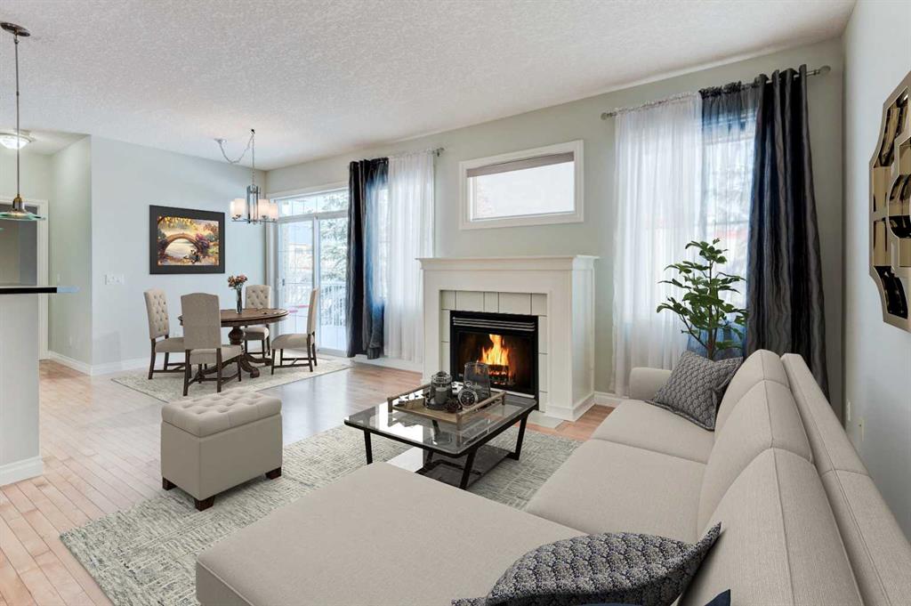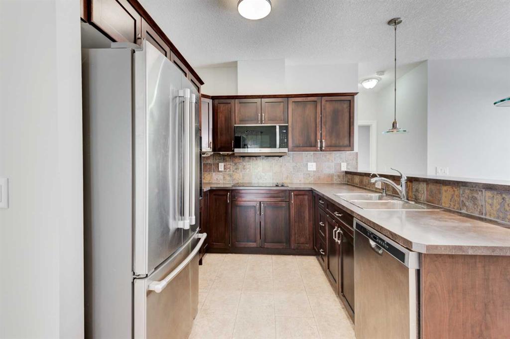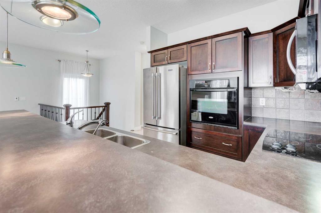Welcome to this well-maintained semi-detached bungalow villa, offering 2,145 sq. ft. of developed living space across two levels, complete with a walkout basement, in the highly sought-after Tucker Hill community of Westmount, Okotoks. This home features an attached heated double garage, 3 spacious bedrooms, and 3 full bathrooms, perfect for downsizers or anyone seeking comfortable single-level living with added walkout flexibility. rom the moment you enter, the spacious tiled foyer sets the tone, leading to an open-plan living area with a modern custom kitchen. The kitchen is equipped with a built-in wall oven, electric cooktop, microwave hood fan, abundant cabinetry, and a raised breakfast bar, making it both functional and stylish. The living room, featuring a cozy gas fireplace, flows seamlessly into the dining area, creating a warm, inviting space for family and friends. Step out onto the upper deck overlooking the green space and pathway system, complete with a BBQ gas line—perfect for outdoor entertaining.The primary bedroom offers a large walk-in closet and a 4-piece ensuite, while the second bedroom, previously used as a home office, is also generously sized. A 3-piece main bathroom with laundry completes this level. The walkout basement expands your living space, featuring a large family room with custom built-ins and included entertainment system, a third bedroom with walk-in closet, a full bathroom with oversized walk-in shower, and a flex room with hot tub rough-in (previously used as a gym/craft room). A generous utility/storage room completes the basement. Modern mechanical updates include central A/C (2024), a new hot water tank (2024), and a high-efficiency furnace (2024). Enjoy low-maintenance living with affordable condo fees covering landscaping, snow removal, insurance, water, sewer, trash, and more. Located in a quiet, well-managed complex with walking paths and convenient visitor parking, this home offers exceptional value. You’re just minutes from shopping, dining, recreation, medical services, and schools, with Calgary only a short drive away, providing the perfect blend of small-town charm and big-city convenience.