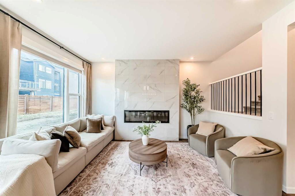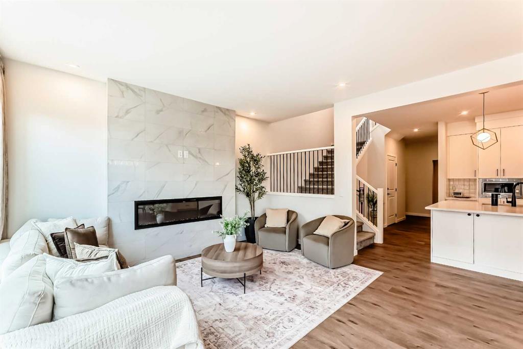 Welcome to this exceptional home built by Cedar Glen in Livingston, 2024 with over 2250 sq ft above and over 970 sq ft below in a 2 bdrm FULLY FINISHED LEGAL SECONDARY SUITE with its own separate side entrance, laundry and furnace, convenient for extended family or whatever you choose. This home is pristine, like new, with high ceilings, luxury vinyl plank flooring, 3 bedrooms, an office, flex space, a bonus room, and 2.5 baths upstairs. You won't be disappointed. Walking into the open floor plan, you will notice immediately the wall of windows from one side of the house to the other. The kitchen is perfectly equipped to entertain a large family, with extra counter space for preparing dinners. SS appliances, quartz counters, a large walk-in pantry, and then into a dining room that will accommodate a table for 10 or 12 for dinners? The living room will fit your big furniture and is adorned with a long electric fireplace with remote. Upstairs, the primary bedroom is large enough for your king-size bedroom suite, with a 5-piece ensuite, dual vanities, quartz counters, separate shower, private toilet and large walk-in closet. Then there are 2 more very nice-sized bedrooms, a bonus room, a laundry room, a flex space, and another 5-piece bathroom with dual vanities. The lower level legal basement suite includes 2 BEDROOMS, a 4-piece BATHROOM, a SPACIOUS KITCHEN with an eating area, a separate laundry and a large living room. Very convenient location! CLOSE to Parks, Pond, Walking trails, easy access to Stoney Trail, Grocery Stores (No frills, McDonald's, Gas, Mega Sanjha Punjab) and minutes to the Superstore, banks, Home Depot, Canadian Tire, Winners, just to name a few. EXCLUSIVE access to the Livingston Hub - The Homeowners Association (HOA), which features a splash park, tennis courts, basketball court, playground and more, a vibrant community centre with year-round recreational activities. Don't miss this opportunity to own an affordable modern home with a legal basement suite in a quiet, peaceful location.