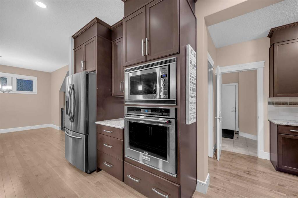 Welcome to this stunning family home in the heart of Mahogany! Beautifully designed and meticulously maintained, this property offers an open-concept main floor with hardwood flooring, a spacious kitchen featuring granite countertops, a large island, pantry, garburator, and stainless-steel appliances including a stove, oven, fridge, dishwasher, and microwave. The main level also includes a dining area, bright living space, 2-piece bath, laundry room, mudroom, and a triple car attached front garage.