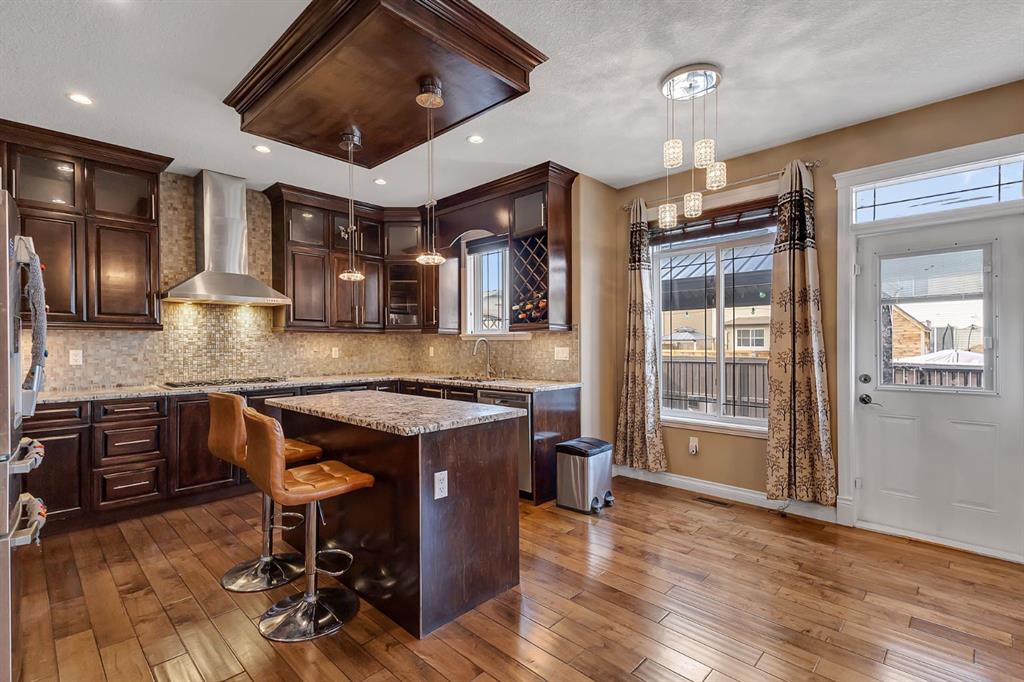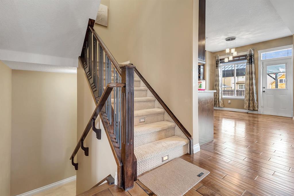 Corner Lot | Approx 2500 SQFT | Mainfloor Bedroom | Custom Woodwork | 2 Ensuites. Stunning 2,500 sq. ft. Fully Upgraded Two-Storey in Bayside. Discover this beautifully designed two-storey home in the sought-after Baywater community, ideally located on a spacious corner lot with a rear paved lane—just steps from Nose Creek Elementary School, parks, and the scenic Canal pathway. This custom-built layout offers a bright family room with a cozy fireplace and built-in cabinetry, a chef’s kitchen with ceiling-height cabinetry and a walk-through pantry, and a formal dining room—perfect for entertaining. A versatile main-floor den can serve as a home office or optional fourth bedroom. Upstairs, you’ll find three generously sized bedrooms and three full bathrooms. The luxurious primary suite boasts a spa-inspired 5-piece ensuite. The second bedroom features its own 4-piece ensuite, while the third bedroom enjoys convenient access to the main 4-piece bath. A spacious bonus room and an upper-level laundry add practicality and comfort. This home showcases exceptional finishes, including hand-scraped hardwood, designer tile, custom railings, in-stair lighting, 8' doors with oversized headers, and 9' ceilings on both the main and lower levels. The exterior is equally impressive with upgraded siding, a rear deck, and an insulated 21' x 23' garage. A perfect family-friendly location where kids can easily walk to school and nearby parks.