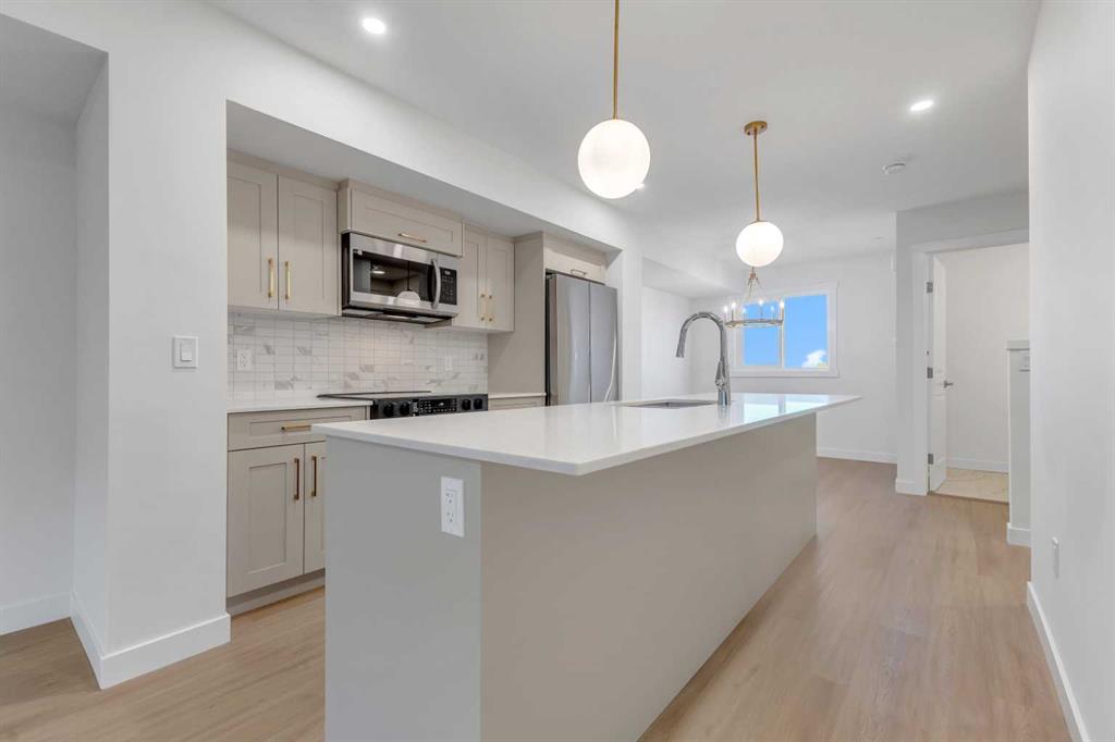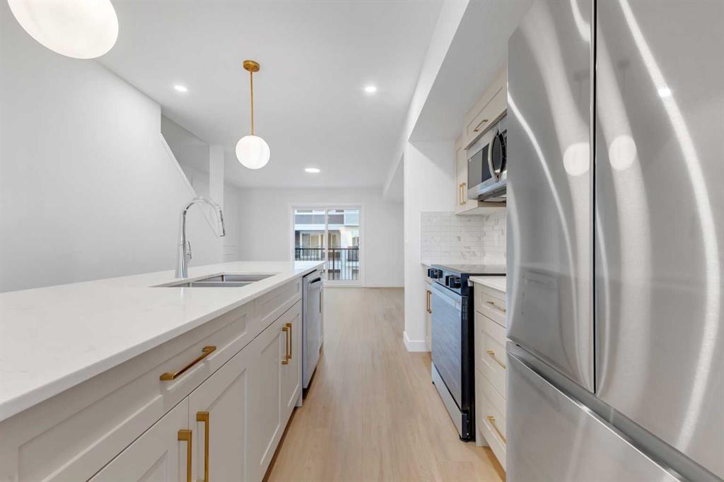 Welcome to your BRAND NEW 3-storey townhome in the vibrant community of Belmont, Calgary. This stunning home features 2 bedrooms, 2.5 bathrooms, and offers 1,358 sq.ft. of thoughtfully designed living space. The bright, open-concept main floor boasts a spacious living area with large windows, a modern kitchen with quartz countertops, full-height cabinetry, stainless steel appliances, and a cozy dining area that’s perfect for everyday living or entertaining. Step out onto your private balcony to enjoy your morning coffee or evening sunsets.