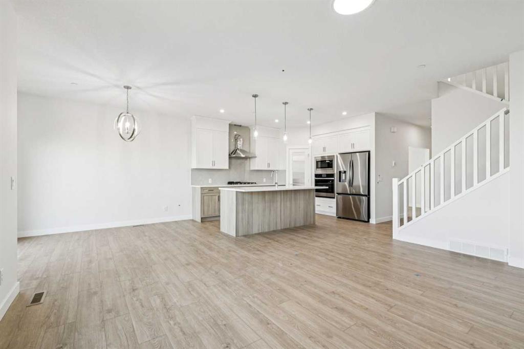 Step inside to find an open-concept floor plan filled with natural light, high ceilings, and modern finishes throughout. The spacious main floor features a large flex room suitable for a home office, and flows seamlessly into a gourmet kitchen complete with upgraded Samsung stainless steel appliances, quartz countertops, and a generous island—perfect for entertaining or casual meals.