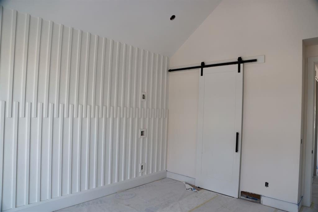 Upstairs, retreat to the serene primary suite, where vaulted ceilings lift the space and morning sun pours through oversized windows. The ensuite reads like a private spa, offering a massive walk-in shower with body jets, double sinks, a deep free-standing soaker tub, and beautifully curated tile throughout. A custom walk-in closet completes the sanctuary. Two additional bedrooms sit down the hall, each with their own custom cabinetry, and a thoughtfully placed built-in desk creates the perfect homework zone or dedicated home office. A spacious laundry room with quartz countertop, sink, and extra storage ensures the second floor is as practical as it is comfortable.