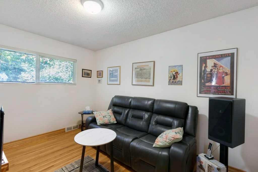 Basically, Below Land Value for Contractor or Builder consideration!! Plus super cute bungalow (as is) on quiet street one block from school and kids playground. This bungalow has Great Curb Appeal & on 50’x100 foot treed lot. Enter foyer and right away you see the charm as you view the combined living and dining room with huge picture window looking out onto treed front yard. The Bright white Kitchen was renovated a number of years ago and is relative today with newer counters, neutral vinyl flooring, white country style cabinets and black iron handles; fridge and stove & built in dishwasher, Lots of counter space and 3 windows for amazing light including eating area. Two large bedrooms: Primary bedroom with double closet, both just around the corner of the updated 4 pc bathroom with marble tub surround, newer flooring and vanity. Main floor has hardwood flooring except kitchen and bathroom. Note as well: Newer windows main floor and lower level. Lower level is partially developed with large recreation room combined with games area. Well treed private west back yard, patio & fenced. There's an oversized single garage, electric opener and control. Fabulous location: nearby shopping; Richmond Square and West Hills as the major malls,.Glendale School - I block; St Thomas Aquinas School-4 blocks; S Gregory Junior High-10 blocks. For the kids, nearby West Hills Rec Centre, and Optimist Park & Rec Center. Enjoy many all year round family activities in Edworthy Park (hiking trails, skip stones in the river, fishing, kids playground, BBQ your hot dogs or hamburgers by the river & more. All these amenities are within 5-10 minutes away including Quick and easy access to Downtown, Stoney Trail & LRT also has access nearby. Truly a great home and opportunity for first time buyer or builder/contractor, thus a must come and see and buy.