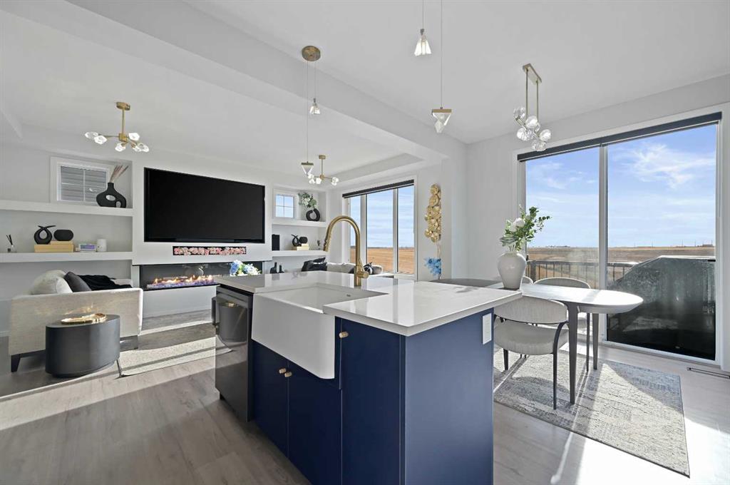 Welcome to this true 10/10 meticulously designed home with an amazing location rocking a SUNNY SOUTH facing yard with no rear neighbours behind and a WALKOUT BASEMENT that has been fully developed with a kitchenette and separate laundry to be that mortgage helper you've been searching for! This is not your cookie cutter home, this home is truly one of a kind with incredible upgrades throughout and it hosts downtown Calgary and mountain views! The bright main level layout feels like a luxury show home with an oversized quartz island, quartz countertops, upgraded two tone cabinets, a farm sink feature, upgraded stainless black steel appliance package, a well designed built in pantry/bar area, pot lights, upgraded light fixtures, oversized electric fireplace feature wall with built-in shelving, air conditioning, upgraded luxury vinyl plank flooring, half bath, "Next Step Option" (stairs to basement finished with railing), knockdown ceilings throughout, 9 ft ceiling on the main floor and a sunny OPEN CONCEPT layout that seamlessly ties the main floor together to feel like home. The upper level greets you with the large bonus room with its very own private balcony off the front of the home and perhaps the coolest room in the house is the kids play area that was developed off of the bonus room.The well laid out primary bedroom retreat hosts a walk-in closet and a 5 piece ensuite bathroom with a dual sink quartz vanity, a fully tiled shower with the upgraded glass option and a deep soaker tub (upgraded with the "Bath Oasis" builder option). The spacious 2nd and 3rd bedrooms upstairs are conveniently located next to the 2nd full bathroom (also with a quartz countertop) which is adjacent to the upstairs laundry room. The fully developed basement rocks a full kitchenette including its own separate laundry which is perfect for guests or renters - this is the mortgage helper that you've been dreaming of! This home is like-new, it's loaded with upgrades and it's the definition of pride of home ownership. Don't lift a finger because this beautiful home with an amazing location is ready for its next owner and this property shows even better in person - come see for yourself!