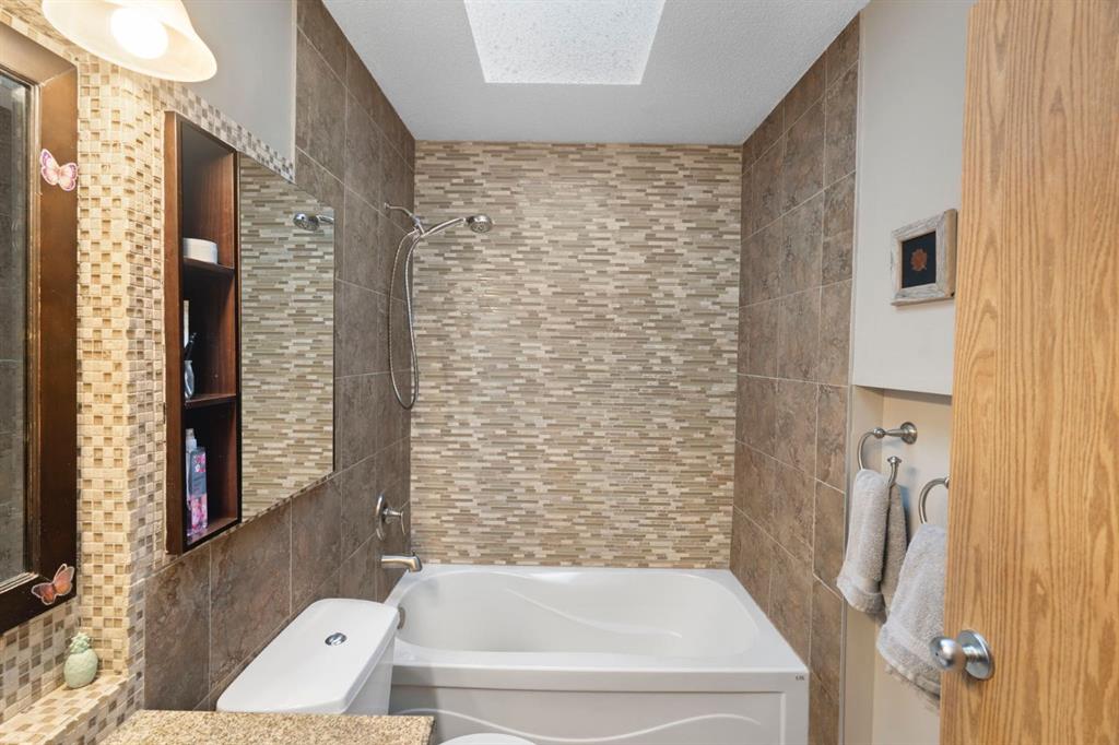 Welcome to this well-maintained and upgraded home in Hidden Valley. This property is backed onto green space with walking paths and has extensive upgrades in the last few years: New flooring (2021), New kitchen appliances (2022), New insulated garage door panels (2023); New hot water tank (2023); New roof and siding (2024), New PEX pipes (2025). Inside, you are greeted by an open floor plan with Central Air Conditioning, perfect for modern living. The main living area is open and inviting, ideal for entertaining guests or enjoying cozy nights in. You will also find skylight and stainless steel appliances in the kitchen. Upstairs, you will find a full bath with skylight and 2 well-sized bedrooms with one leading to the deck. The Rolling Security Shutter provides additional piece of mind. The fully finished basement expands your living space with an additional bedroom, a rec room which can be used as a bedroom, and a full bath. Step outside to your private, fully fenced backyard that backs indirectly onto green space and walking paths. The backyard features a sizeable deck with BBQ gas lines. The attached double garage with insulated panels and driveway is perfect for any family use. The property is within walking distance to K-9 Public and Catholic schools, parks, and playgrounds, close to city transit and has quick access to Deerfoot and Stoney Trail. Book your showing now!