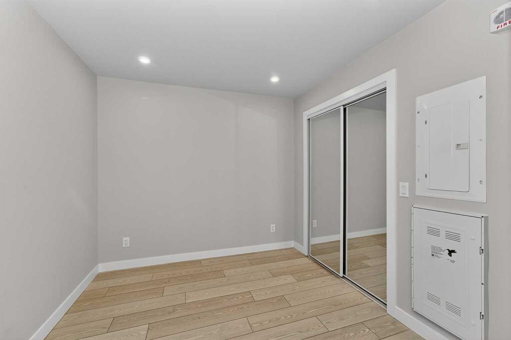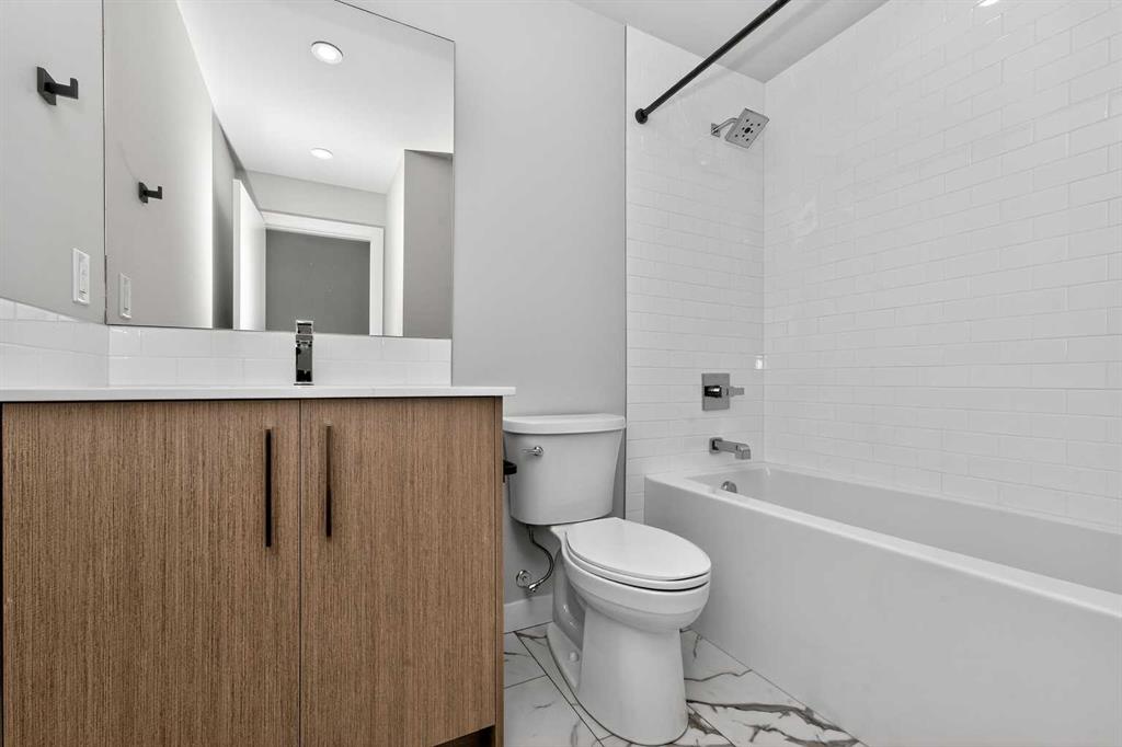The bright primary bedroom features expansive windows and generous closet space, while the contemporary 4-piece bathroom includes a quartz vanity and in-suite laundry for added convenience.