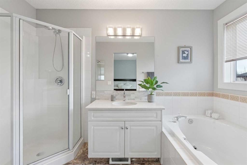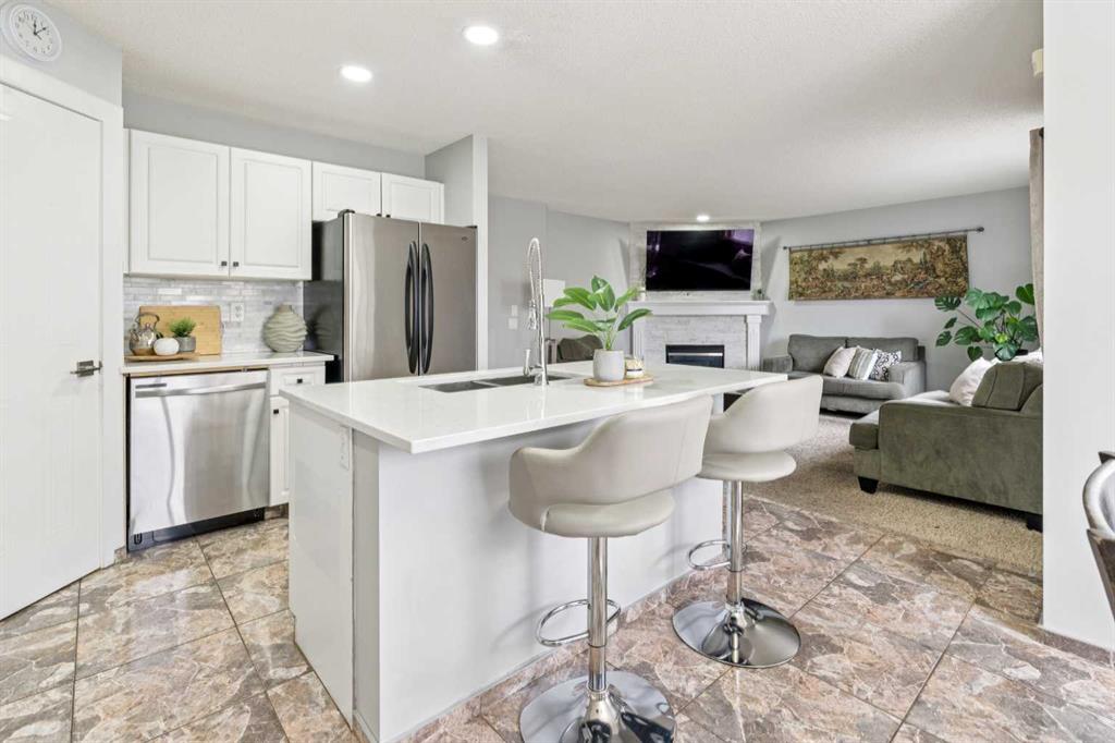 The main floor is designed with both everyday living and entertaining in mind. A formal living room and dining room provide comfortable spaces for gatherings, while the sunny breakfast nook and well-appointed kitchen make day-to-day life easy. The kitchen features upgraded quartz countertops and stainless steel appliances, along with plenty of cabinet and counter space. Just off the kitchen, the cozy family room with a gas fireplace invites you to unwind. The convenient main-floor laundry room is a great size and features a window—making it versatile enough to use as a small office, hobby space, or additional storage. A 2-piece bathroom completes this level. This home is also equipped with air conditioning and NO POLY-B in the home.