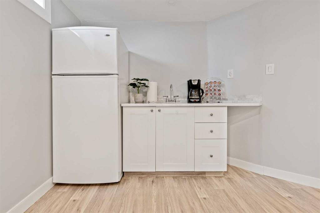 The fully developed walkout basement adds even more versatility. It features a large bedroom, a 4-piece bathroom, and a second laundry area with washer and dryer—an excellent setup for extended family, guests, or older children. The wet bar, complete with a full-size sink and refrigerator, and the spacious family room provide additional functional living space. With its thoughtful layout, this walkout level also offers great potential if you choose to explore a future basement suite (subject to city approvals).