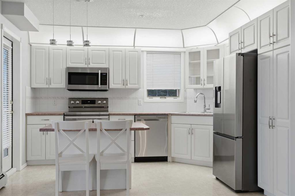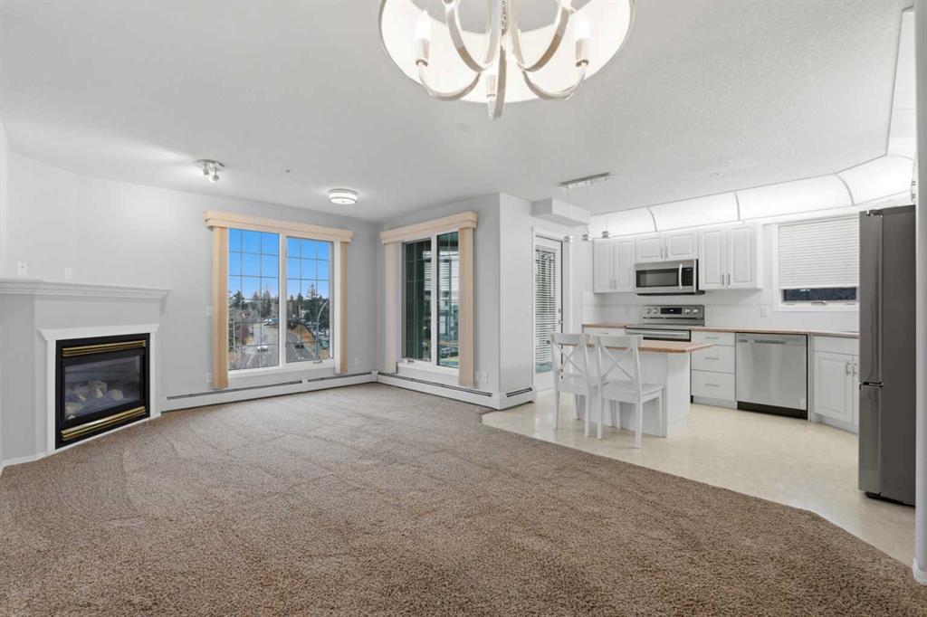 END UNIT | 55+ BUILDING WITH POOL, HOT TUB, WORKSHOP, CAR WASH & MORE | 2 BEDROOMS & 2 FULL BATHS | CENTRAL AIR CONDITIONING | 2 UNDERGROUND PARKING STALLS | QUICK POSSESSION AVAILABLE This beautifully maintained corner unit combines exceptional natural light, generous indoor living and the comfort of an active adult building known for outstanding amenities. A bright open floor plan creates effortless flow with defined spaces for dining, relaxing and entertaining. Large windows and extra corner exposure enhance the inviting living room anchored by a gas fireplace for cozy evenings. The neutral white kitchen provides extensive cabinet and counter space, stainless steel appliances and a centre island with seating for casual meals. Sliding doors off the living room and a second access point from the kitchen connect to the glass-enclosed deck for year-round enjoyment, indoor/outdoor lifestyle and views over the community. Both bedrooms are thoughtfully separated for privacy and functional living. Retreat to the spacious primary bedroom featuring a large walk-in closet and private 4-piece ensuite. The second bedroom boasts cheater access to a 3-piece bathroom, ideal for guests or flexible use as a den or hobby room. In-suite laundry adds daily convenience. Central air conditioning ensures comfort throughout warmer months. Two secure underground parking stalls and an assigned storage locker keep everything organized and protected. This popular 55+ complex is exceptionally well-equipped, offering a full list of incredible amenities including an indoor pool, hot tub, fitness center, library, games room with billiards, party room for gatherings, rentable guest suites, a workshop, plus 15 access to Heritage Square building, a car wash bay and so much more. The location in established Acadia places every lifestyle need within easy reach. Transit and major routes provide an efficient commute anywhere in the city, including downtown. A rare combination of size, sunlight, amenities and convenience within a welcoming adult-oriented community. Vacant and move-in ready!