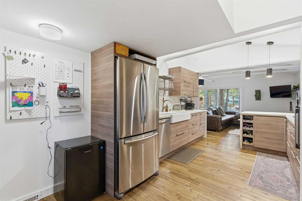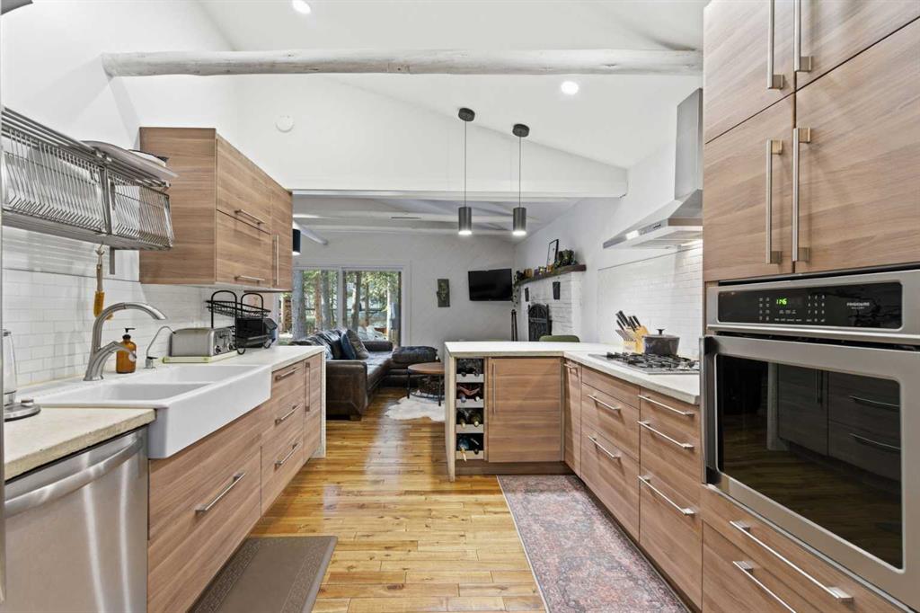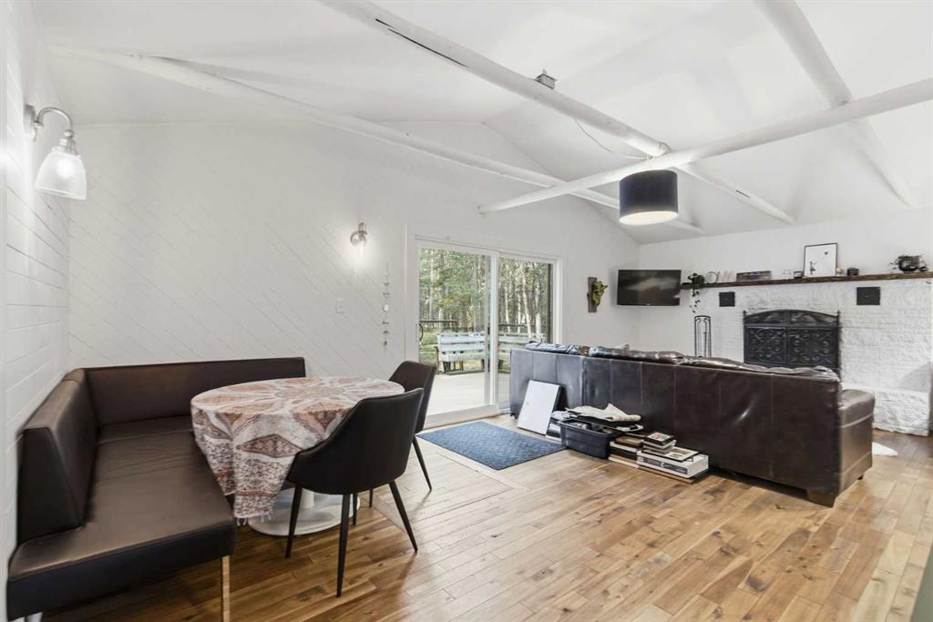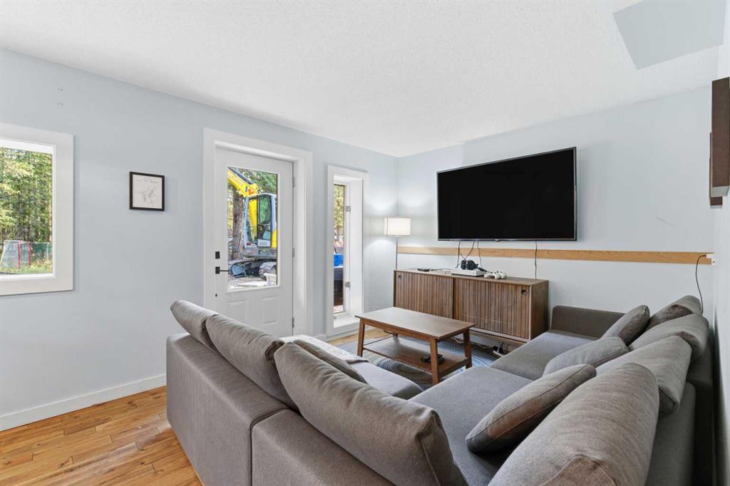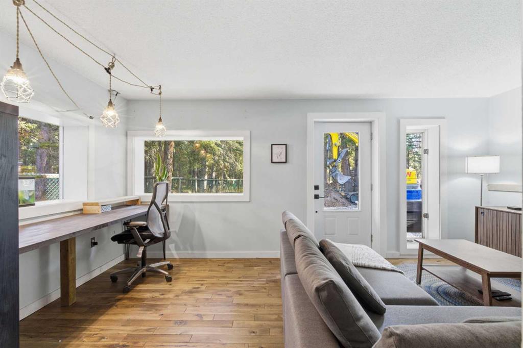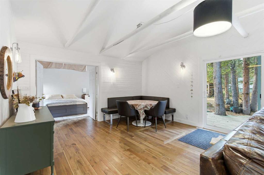 Discover exceptional privacy and natural beauty in the heart of Bragg Creek. Tucked away on a serene one-acre parcel, this charming property offers the perfect blend of peaceful country living and modern convenience—just a short walk to the river, pathways, shops, and restaurants. And a quick 20-minute commute to Calgary. Thoughtfully updated over the years, the home features a welcoming main floor with a newer kitchen showcasing stainless steel appliances, abundant workspace, and warm cabin-inspired details that honor the property’s history. A sun-filled flex room with patio access provides an ideal office or creative space, while a separate main-floor area with its own entrance and full bath offers a perfect retreat for guests. Upstairs, three comfortable bedrooms and a NEW 5-piece bath provide a quiet place to unwind. Whether enjoying morning coffee on the deck or entertaining in the spacious yard, you’ll feel immersed in nature while remaining connected to all that this vibrant hamlet has to offer. With a brand new double detached garage and new municipal water and sewer connections, this is more than a home—it’s a gateway to the unmatched lifestyle, outdoor adventure, and community spirit of Bragg Creek.