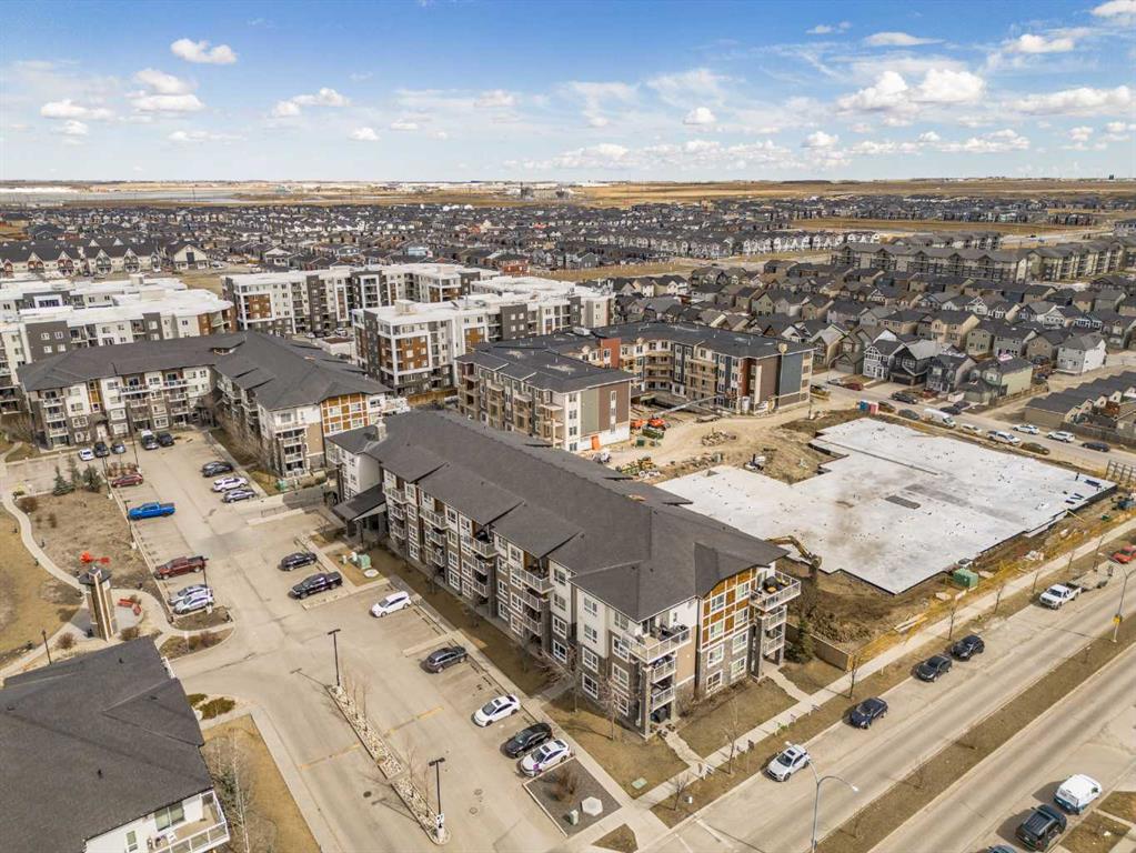 IMMEDIATE POSSESSION! VACANT and MOVE-IN READY! Welcome to this bright and beautifully designed TOP-FLOOR condo in the sought-after community of Skyview Ranch—where style, comfort, and convenience come together. As you enter, you're welcomed by a spacious and sunlit open-concept living area, perfectly suited for both relaxing and entertaining. The seamless flow into the contemporary kitchen is sure to impress, featuring sleek grey cabinetry, granite countertops, stainless steel appliances, and an abundance of counter and storage space. Whether you're preparing a quiet meal or hosting friends, this kitchen is both beautiful and practical. A dedicated office nook offers the ideal tucked-away workspace for remote professionals or students, making working from home effortless and efficient. Step through the sliding glass doors from the bright and airy living room onto a generous east-facing balcony—perfect for sipping your morning coffee or hosting summer barbecues. Take in the open, unobstructed views while enjoying the convenience of a built-in BBQ gas line, ideal for effortless outdoor entertaining. Designed for comfort and privacy, this well-planned layout places the primary bedroom on one side of the unit, complete with a walk-in closet and a spa-inspired 4-piece ensuite bathroom. On the opposite side, a second generously sized bedroom sits adjacent to its own 4-piece full bathroom, making it perfect for guests, children, or roommates. Additional highlights include: a convenient in-suite laundry and storage room, stylish mix of cork, tile, and plush carpet flooring, secure underground parking stall with a private storage cage, key fob-secured front lobby with video surveillance for added peace of mind. Location is everything, and this home truly delivers. Just steps away from the brand-new Skyview Ranch Elementary/Middle School (K–9), this community is perfect for families. Enjoy the nearby playgrounds, parks, local shopping, and essential amenities—all within walking distance.This condo offers an exceptional opportunity to own in one of Calgary’s most vibrant and growing neighborhoods.