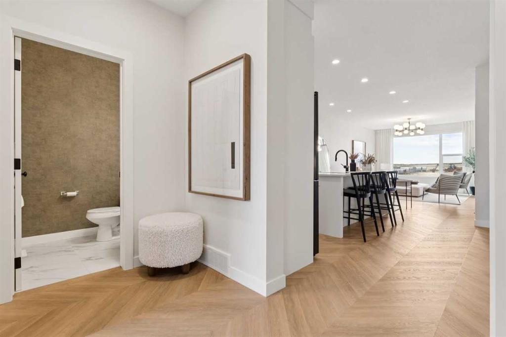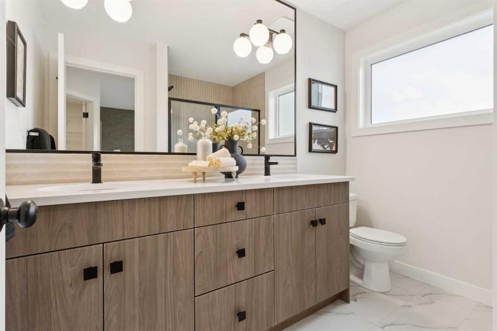 Move-in ready with lots of upgrades! The Lucca by Cardel Homes offers 1,499 sq ft of upgraded living space in the desirable Clearwater Park community of Chestermere. This 3-bed, 2.5-bath home features 9’ main and basement ceilings, an electric fireplace, LVP flooring throughout the main floor and loft, and tile flooring in all bathrooms. The custom kitchen includes soft-close cabinetry, dovetail drawers, black stainless Samsung appliances, upgraded backsplash, quartz countertops, matte black hardware, and a Blanco granite sink. A side entrance provides future flexibility, while the upper floor includes a central loft, laundry, and a spacious primary bedroom with dual sinks. Additional highlights include upgraded railing, enhanced tile package, pot lighting, air conditioning, front and rear landscaping, a 12’ x 11’ exposed concrete patio, a rear gas line, and 30-year shingles. Located in Clearwater Park with easy access to Calgary, amenities, and parks. Photos are representative.