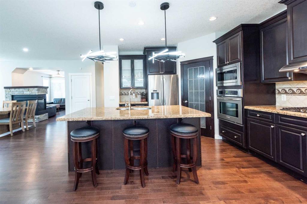 With six (6) generously sized bedrooms, one (1) main-floor guest room, and five bathrooms, this home provides unparalleled space and comfort. A vaulted bonus room offers the perfect retreat, while the primary bedroom boasts a luxury ensuite. Additional upgrades include custom shelving, an extended nook area, designer backsplash, and high-quality carpeting. Large west-facing windows flood the space with natural light, and the home has been freshly painted throughout.