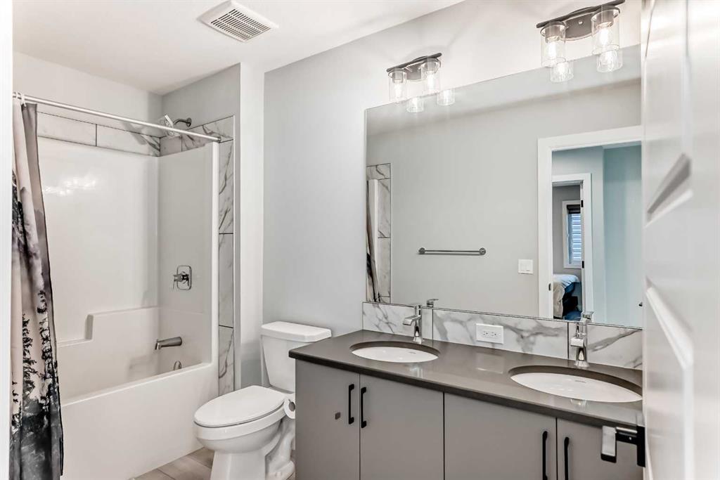 Main floor highlights: Open-concept living area with fireplace, Modern gourmet kitchen with granite countertops, high-end appliances, built-in oven & microwave combination and range hood, Main floor bedroom and full bathroom and Oversize deck for summer BBQs. Upstairs: Large bonus room for media or play, Upstairs laundry, Master bedroom with 5-piece ensuite and walk-in closet, 3 additional spacious bedrooms. Walkout basement: Fully developed and registered as a legal secondary suite, 9 ft ceilings, 1 bedroom, flexroom/den, kitchen, and laundry.
