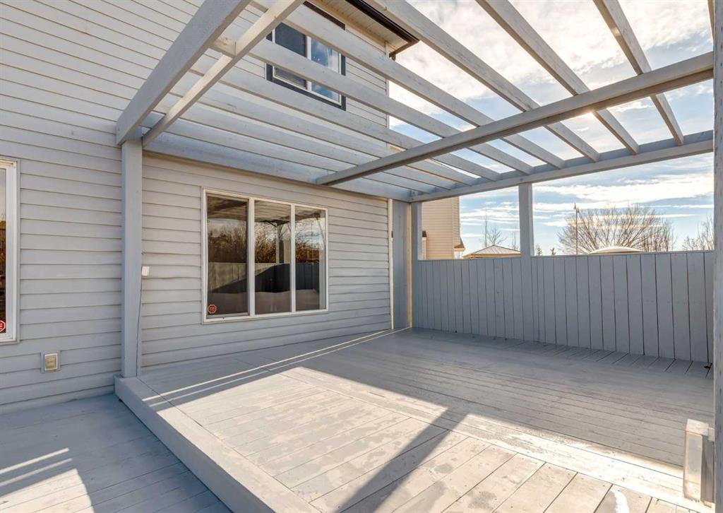 Welcome to this bright and welcoming 1,421 sq. ft. two-storey home in Cimarron Meadows, perfectly set on a quiet cul-de-sac with a large pie-shaped lot and a sun-soaked west-facing backyard. The main floor offers a spacious, open kitchen with classic oak cabinetry, an abundance of counter space, a generous walk-through pantry, and an upgraded stainless steel gas range—an ideal setup for busy families and enthusiastic cooks alike. The adjoining dining and living areas overlook the beautiful backyard, complete with a two-tiered wood deck and plenty of room for kids, pets, or future outdoor living ideas. A convenient 2-piece powder room and a combined laundry/mud room with access to the double attached garage complete the main level. Upstairs, the huge primary bedroom impresses with its natural light and walk-in closet, joined by two additional bedrooms and a well-appointed 4-piece bathroom. The partially finished basement, with two windows and a rough-in for a future bathroom, offers a great opportunity to expand your living space to suit your needs. Ideally located close to schools, parks, playgrounds, shopping, and restaurants, this is a fantastic opportunity to settle into one of Okotoks’ most family-friendly communities.