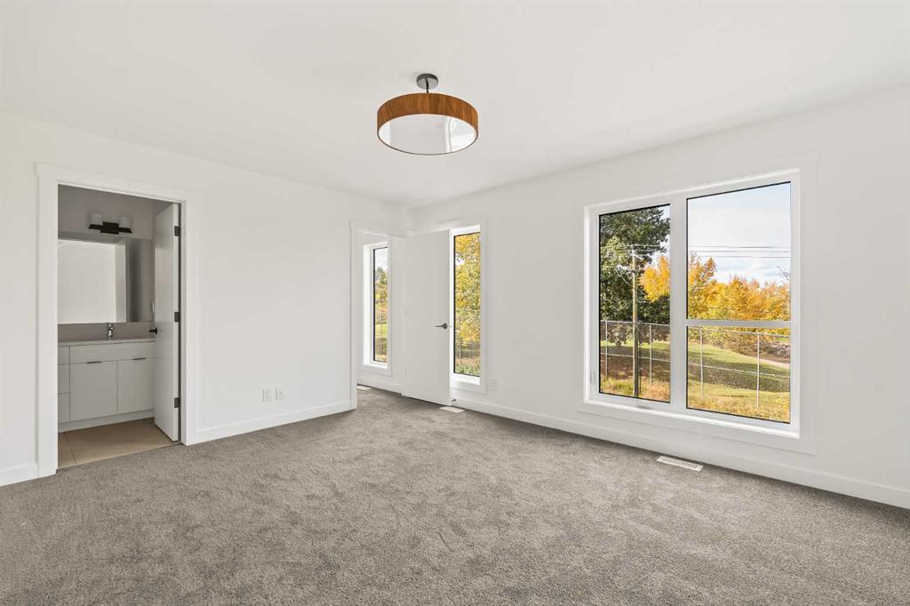 Limited promotion: FREE A/C + 2 YEARS OF FREE CONDO FEES ($18,000 VALUE)! Welcome to this stunning urban townhome at Crown Park – The Stanley Walkout, offering a maintenance-free lifestyle at Calgary's newest inner-city development that has stunning downtown views! This brand-new, spacious home features 3 bedrooms, 2.5 bathrooms, a home office space, and a versatile flex room in the walkout - perfect for a media room, home gym or a larger second office space. Featuring a covered outdoor patio spanning ~21'x10', an elevated ~22'x8' balcony + a 400 ft2 rooftop patio and a private double attached garage, this home has ample space for living both inside and outside, with an attached garage to keep your vehicles and valuables safe all year long. With over 2,200 ft2 of developed living space inside + nearly 800 ft2 of outdoor living space, this home is perfect for young professionals, investors or those looking to downsize without compromise. The open-concept main floor is thoughtfully designed, with 9' ceilings oversized triple-pane windows that fill the home with natural light. The gourmet kitchen serves as the heart of the space, featuring a gas cooktop, built-in microwave and oven, range hood, and a large quartz island with seating - ideal for entertaining. The adjacent dining area and living room create a seamless flow, while the large balcony provides a peaceful retreat, overlooking green space and accessible directly from the living room which has a 10' lofted ceiling. Completing this level is a 2-piece powder room. Upstairs, the expansive primary bedroom offers a walk-in closet and a luxurious ensuite with dual sinks and a walk-in shower. Two additional well-sized bedrooms, a full bathroom, a home office / flex space and conveniently located laundry area round out the second level. The lower-level features a large flex room that spans 17'x14' with 10' ceilings and is the perfect space for a home office, gym, media room or guest space. A private patio provides easy access to the outdoors off of the lower level entryway. With additional upgrades such as an A/C rough-in, natural gas lines for BBQing, and a 3-year extended workmanship warranty, this home offers both comfort and peace of mind. Located just minutes from downtown Calgary, Crown Park offers the perfect balance of urban living without the congestion. This is a rare opportunity to own a brand-new townhome in a prime location. Legal fees are included with the purchase of this brand new home.